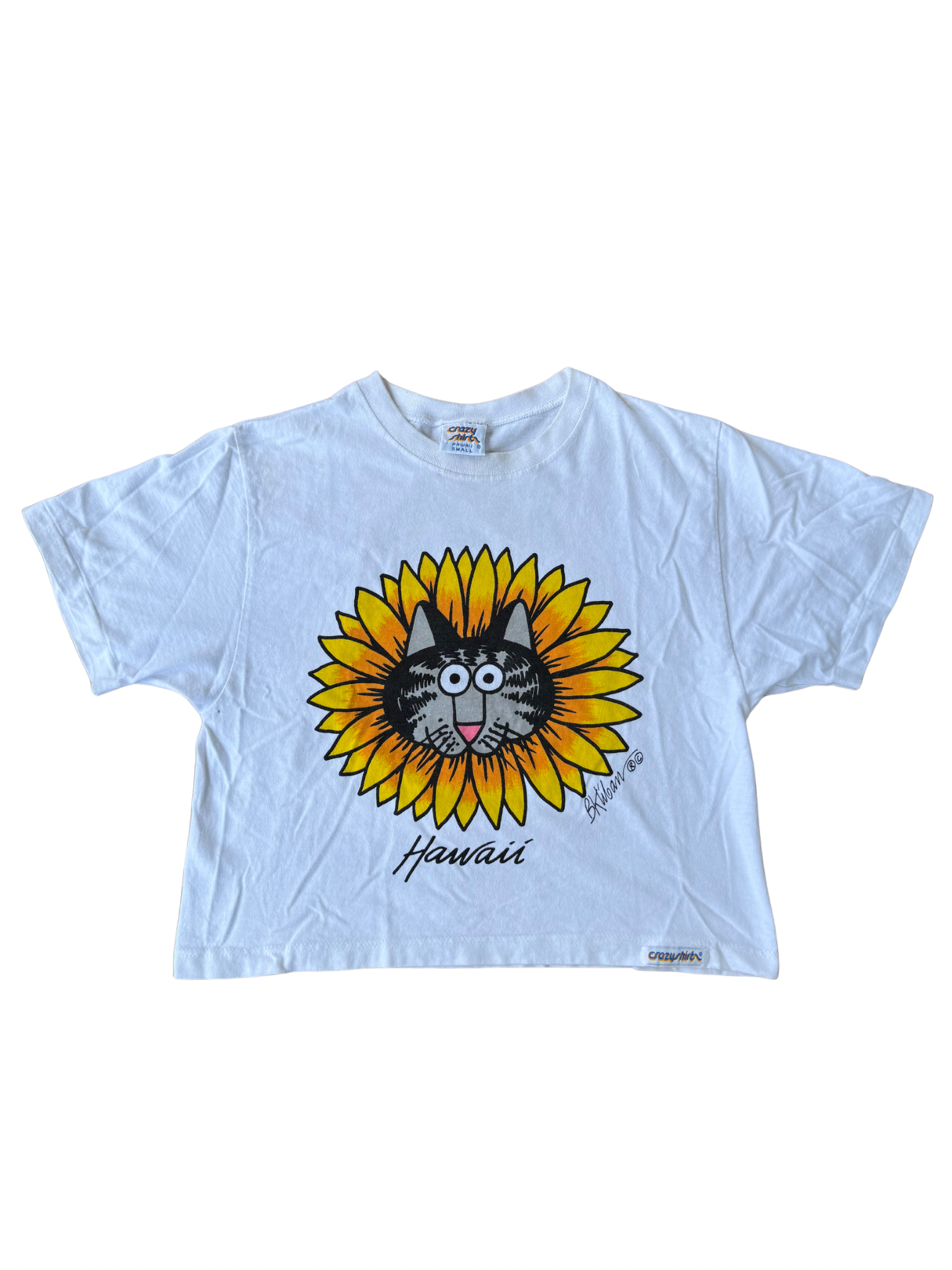 Vintage Crazy Shirt Hawaii “Cat in Sunflower” Crop Tee