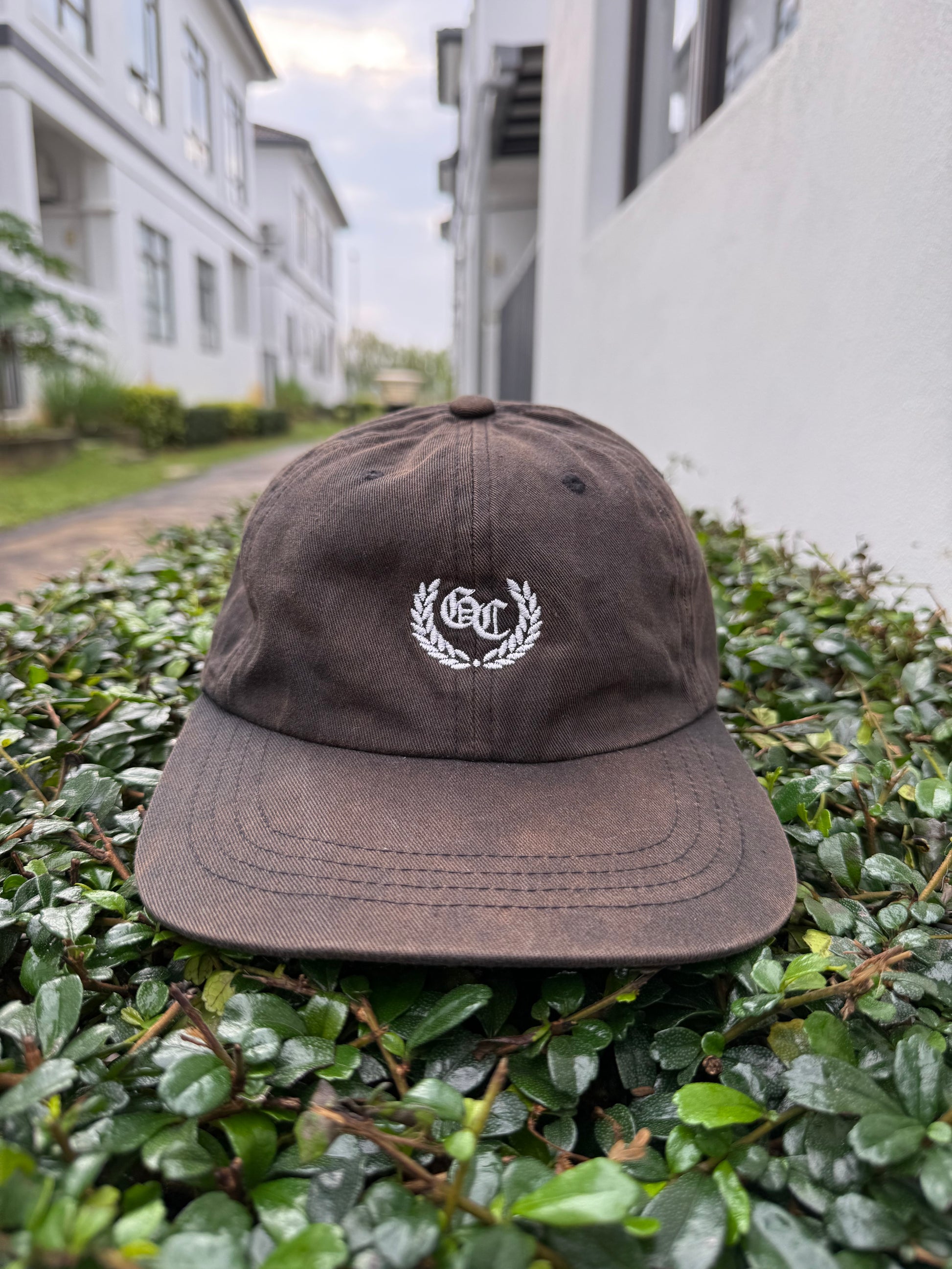 - Front: GC logo + laurel wreath embroidery