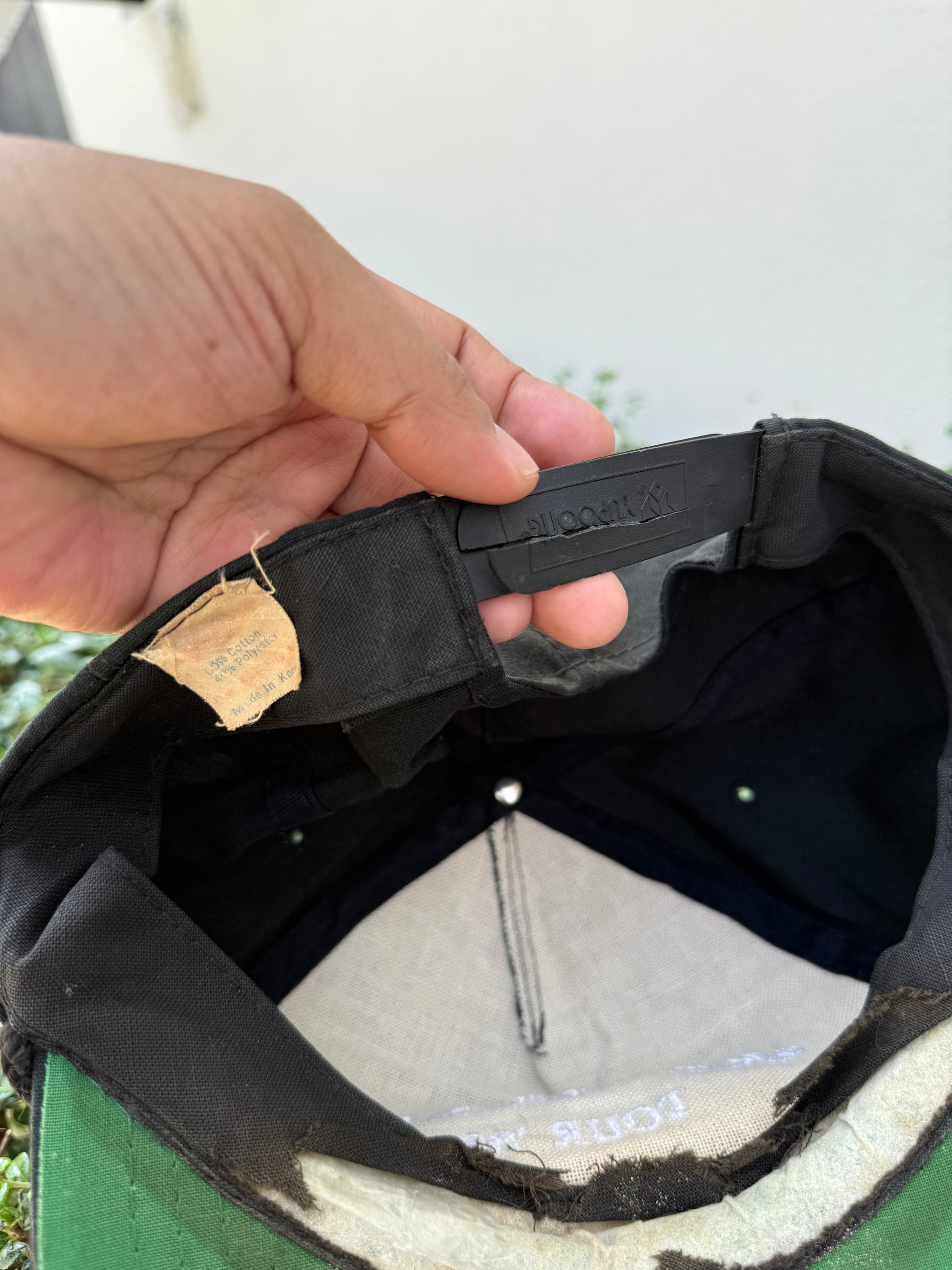 - Condition: Vintage fair – visible age and wear (sweatband fray, discoloration), embroidery intact, still fully wearable