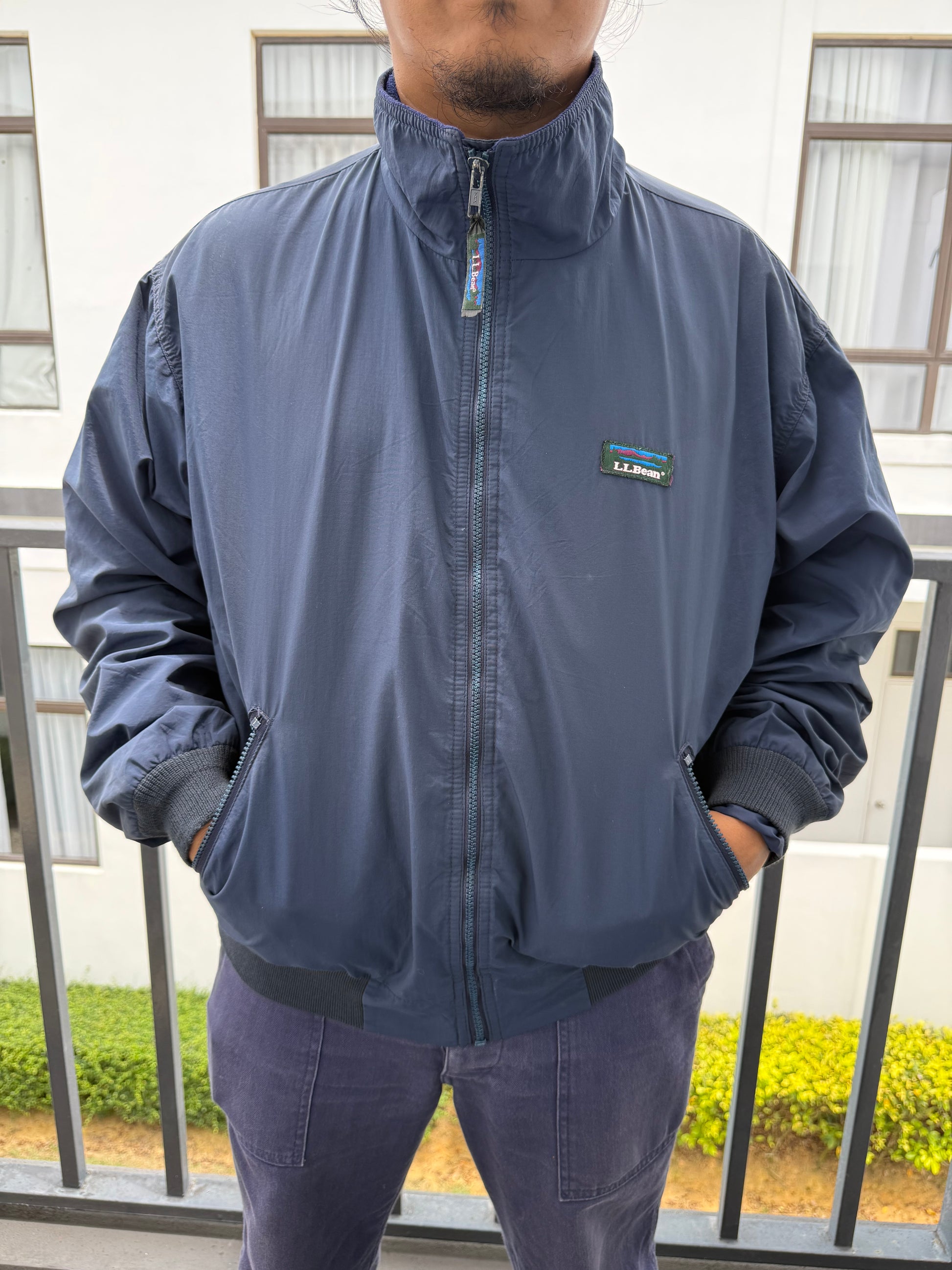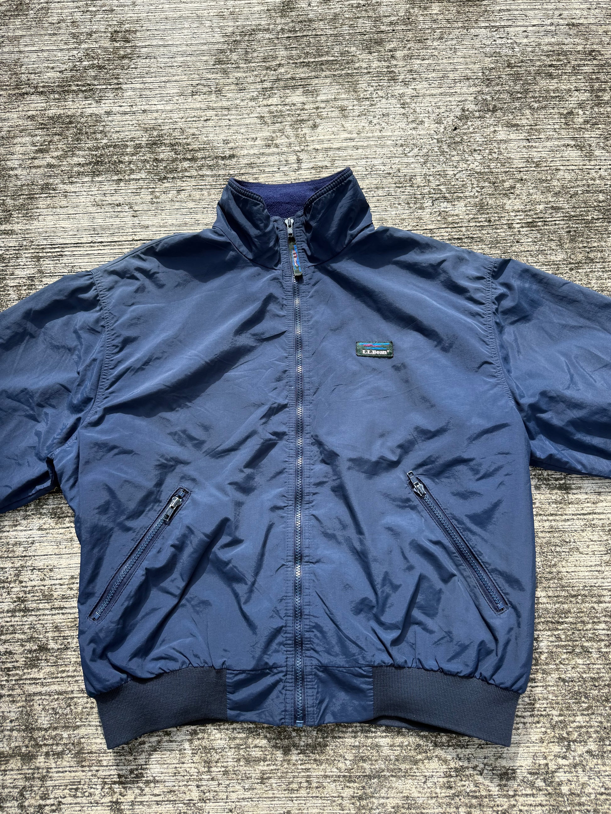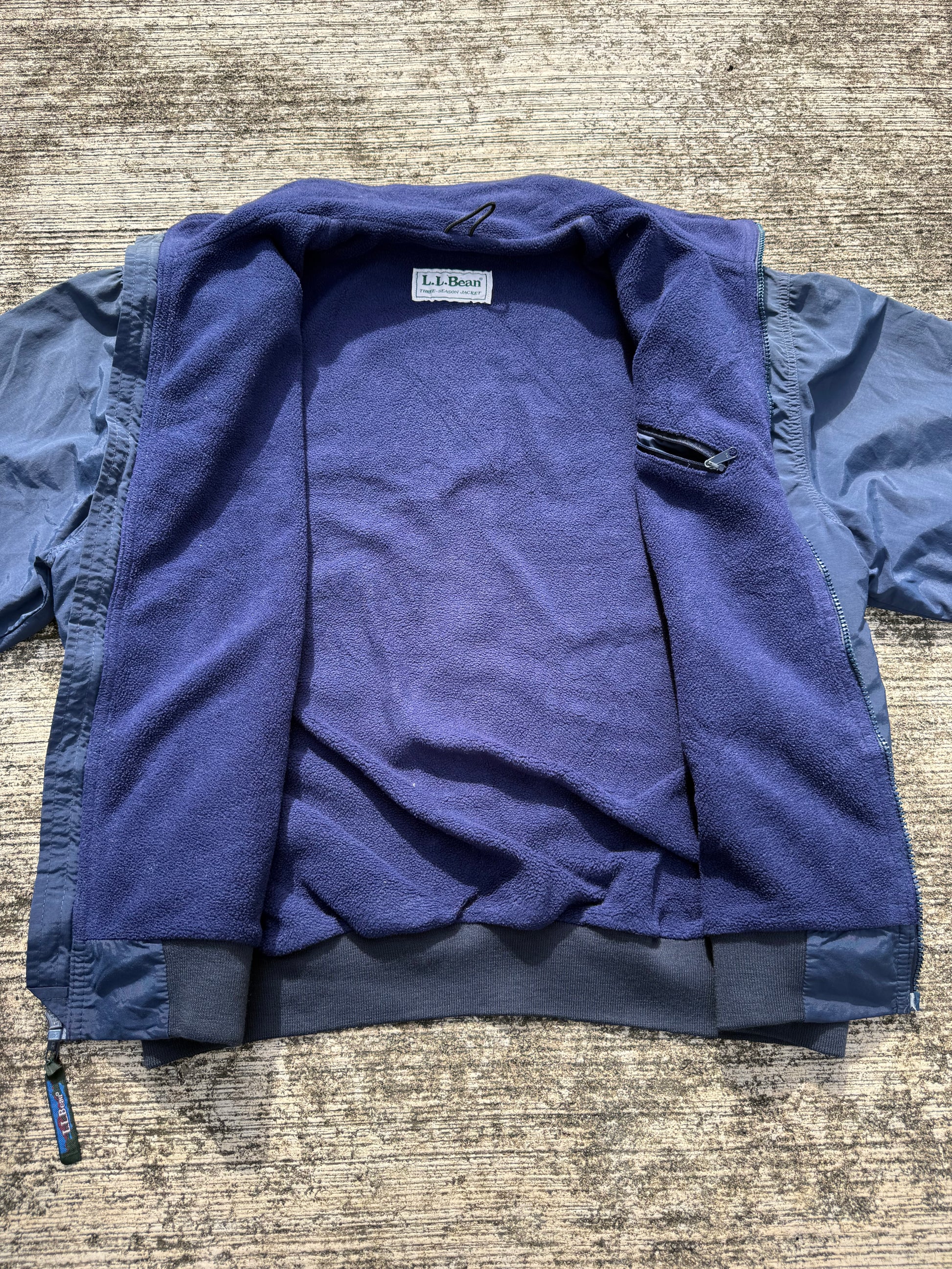 Vintage L.L.Bean Three-Season Jacket – Navy Blue Fleece-Lined Windbreaker USA Made