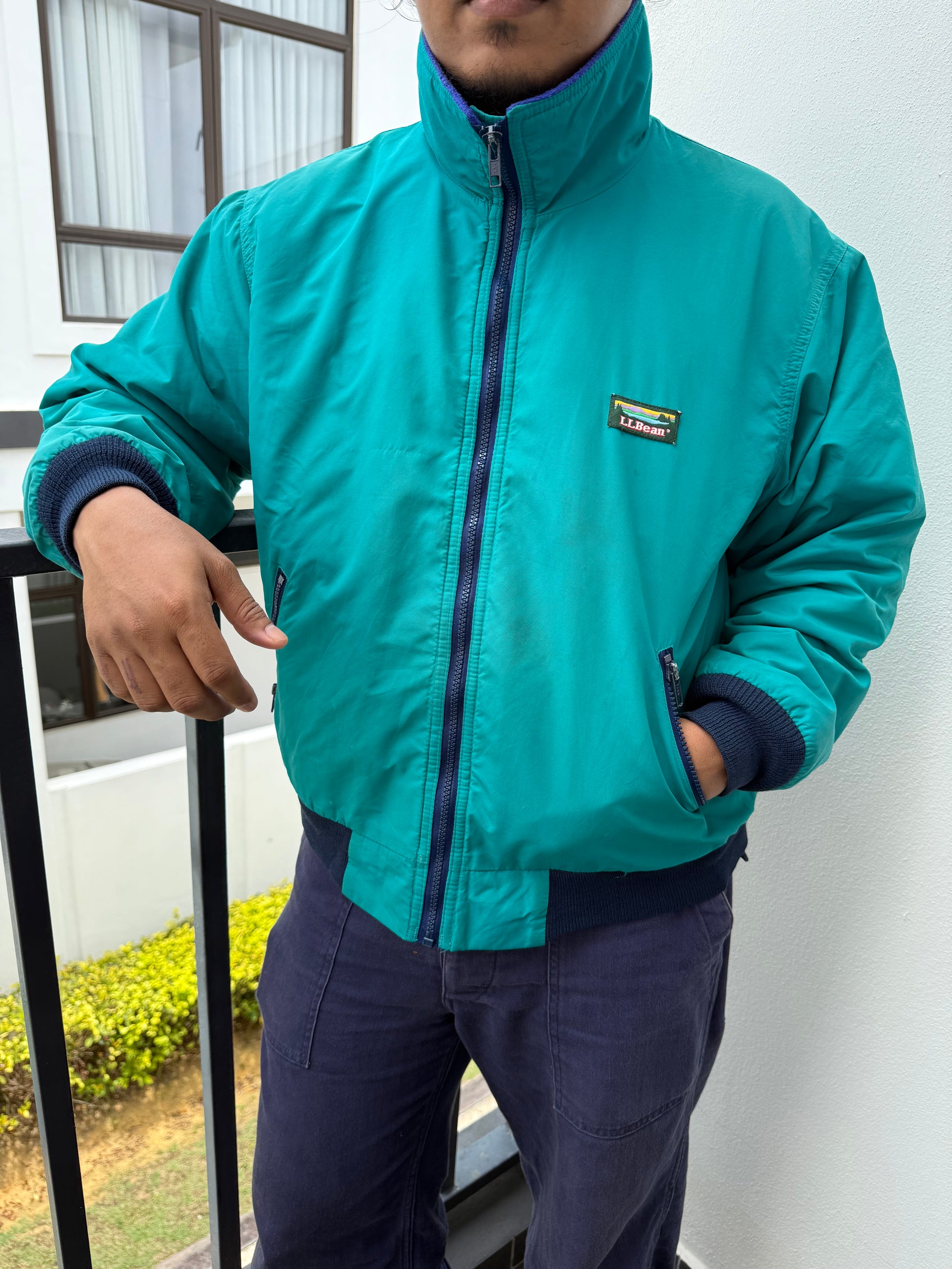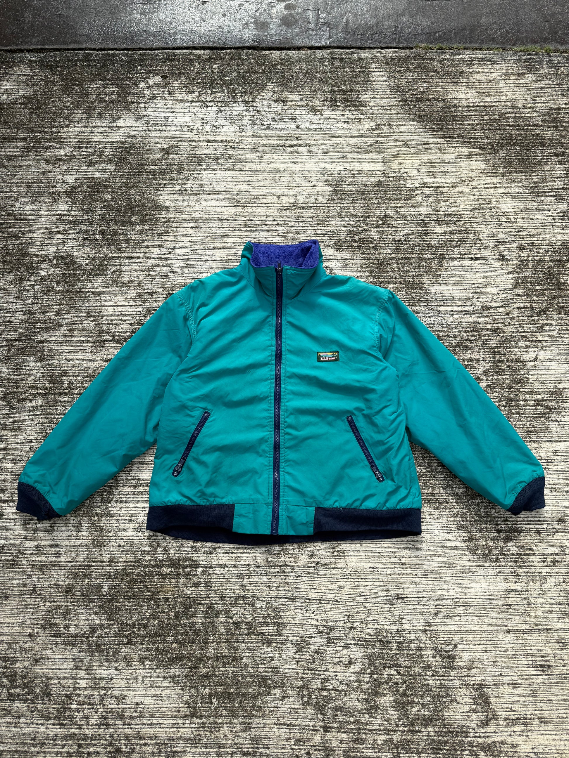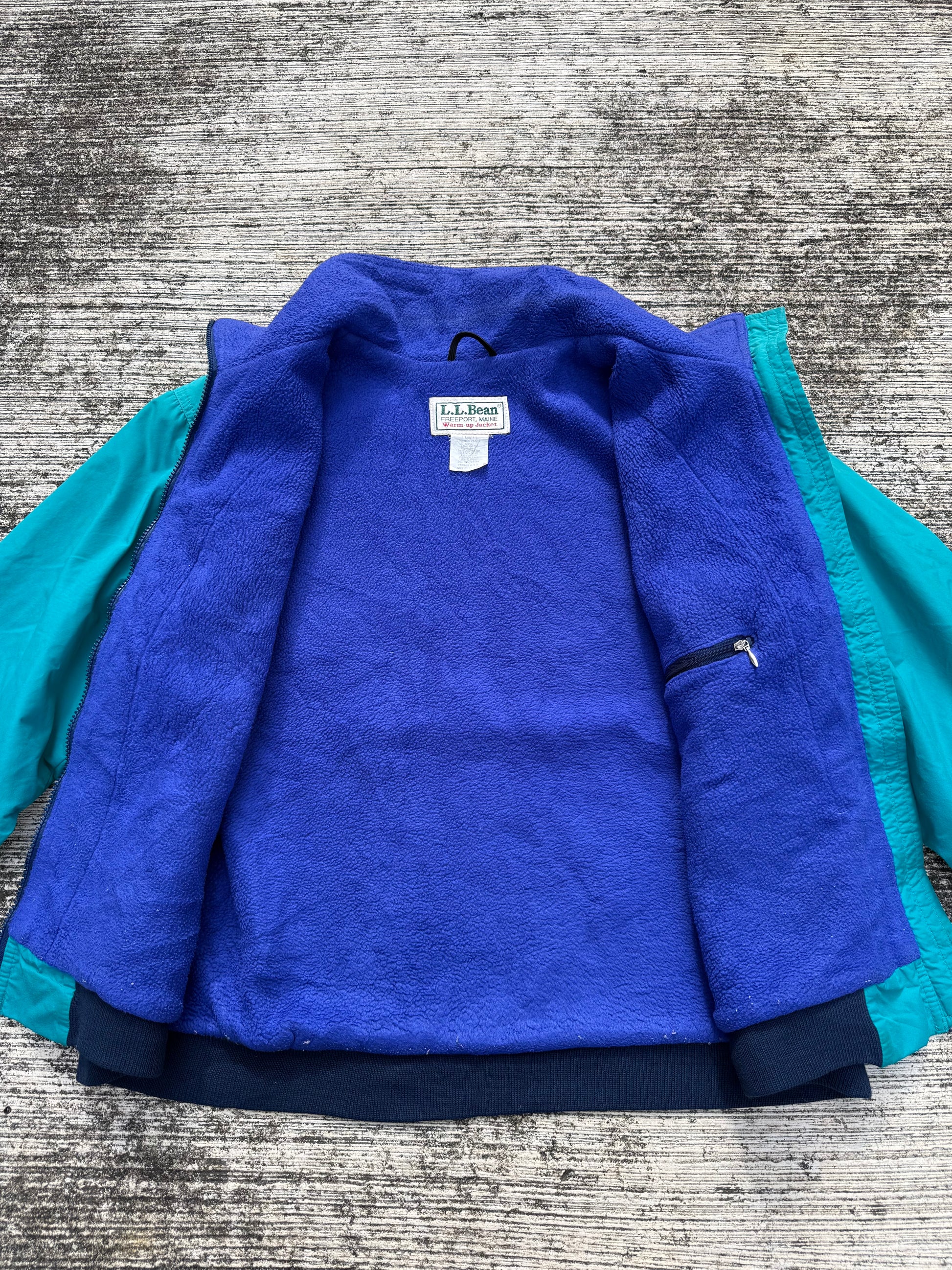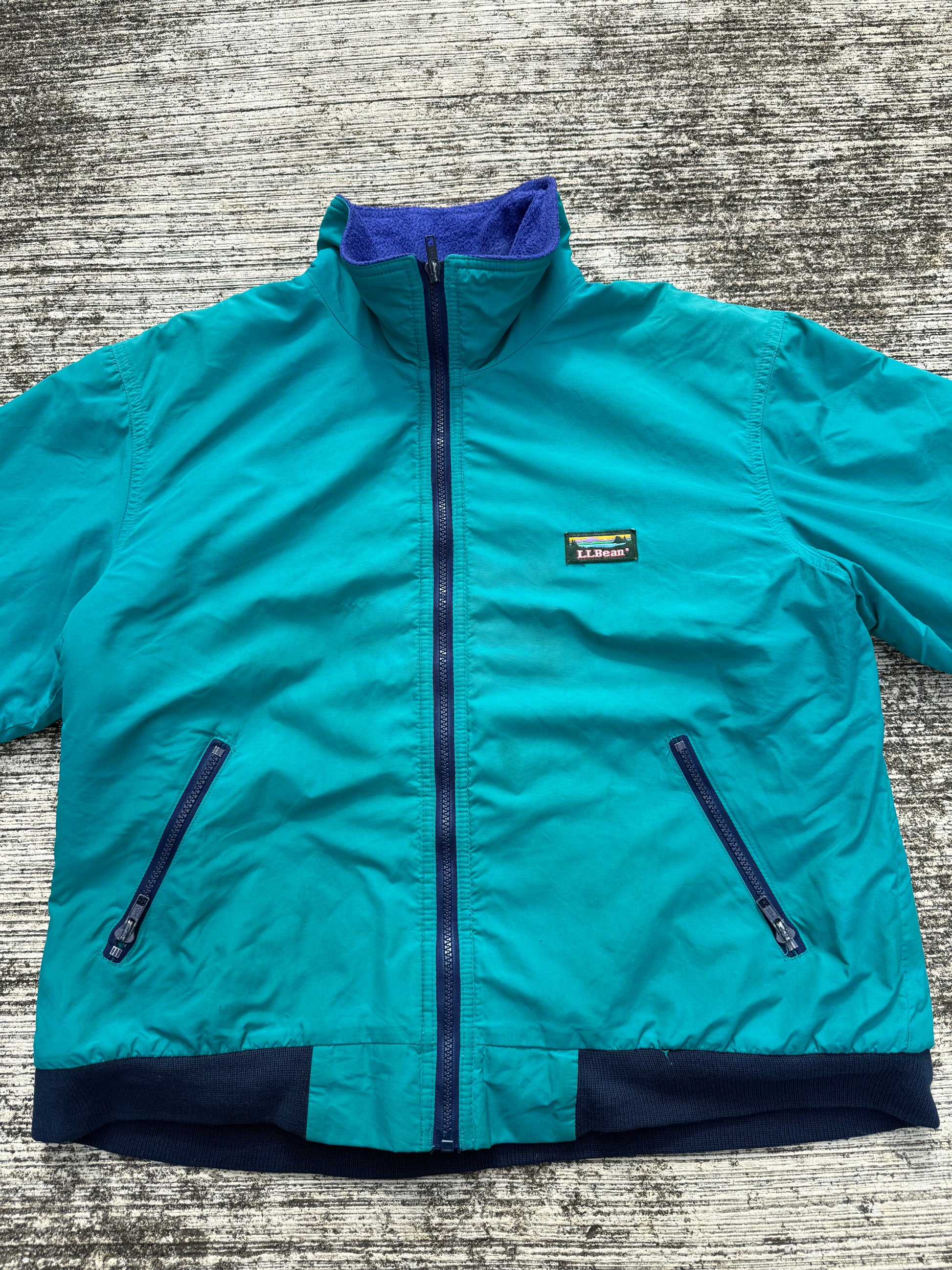 Vintage L.L.Bean Warm-Up Jacket – Made in USA Teal Nylon with Blue Fleece Lining