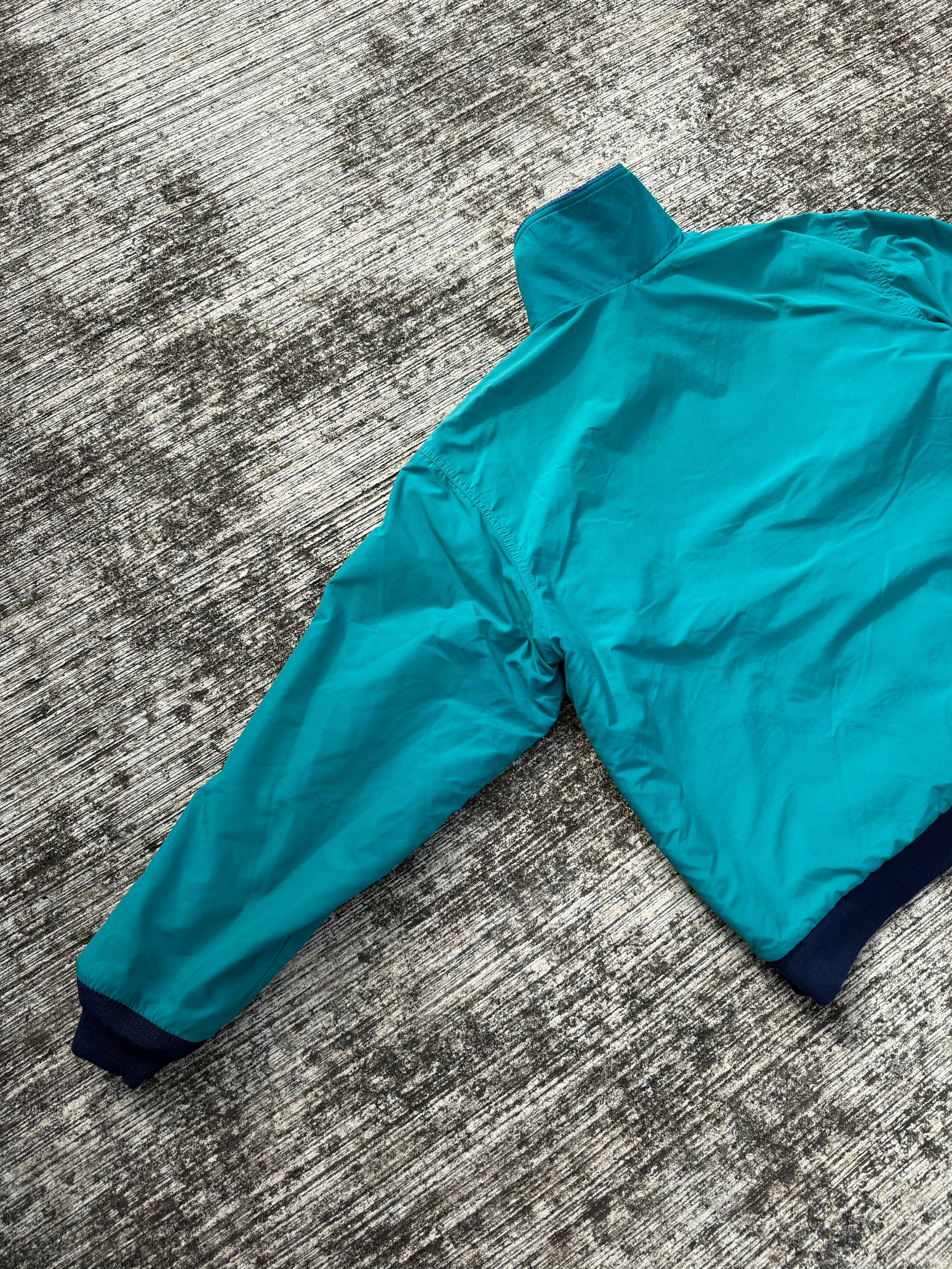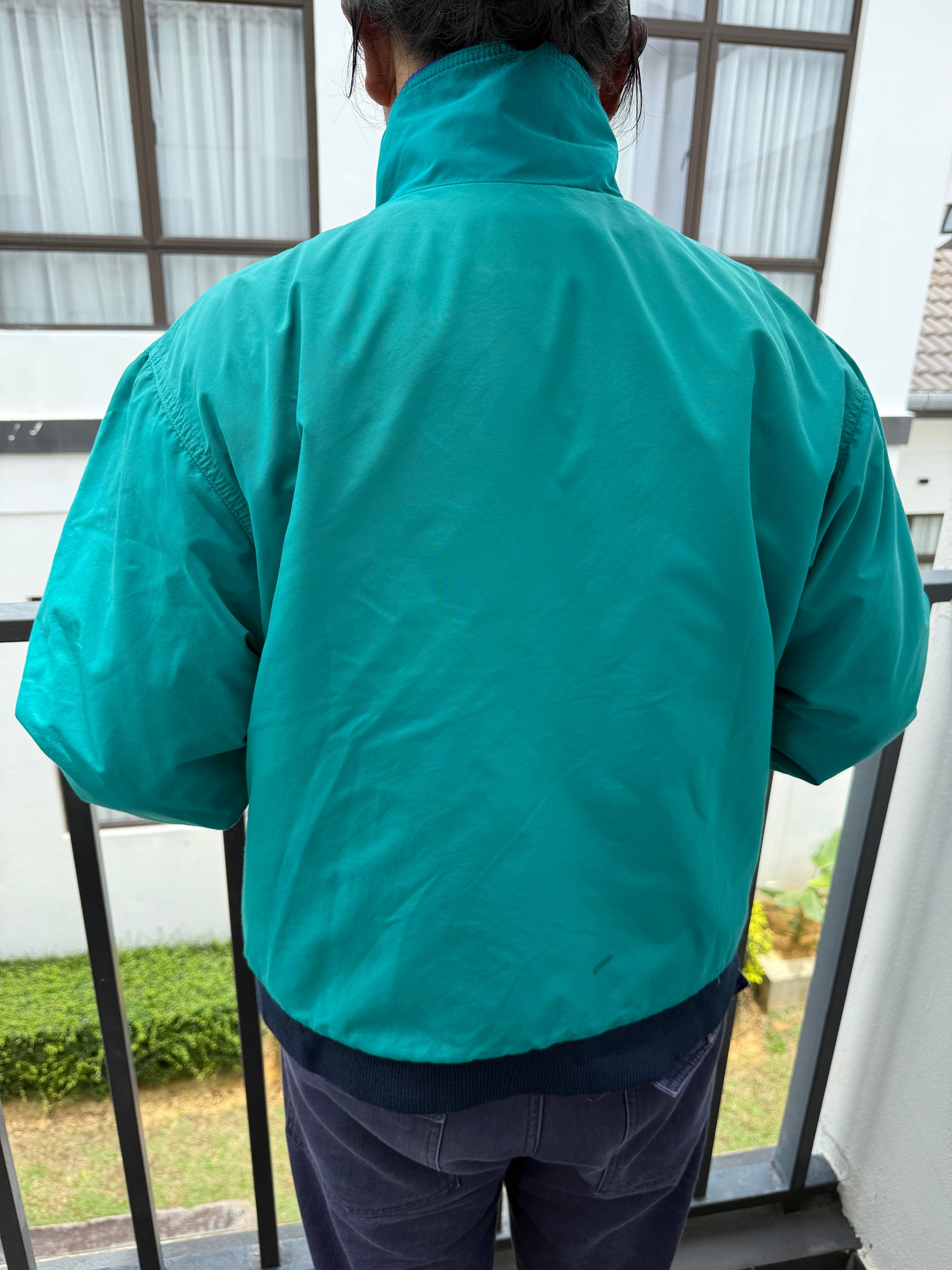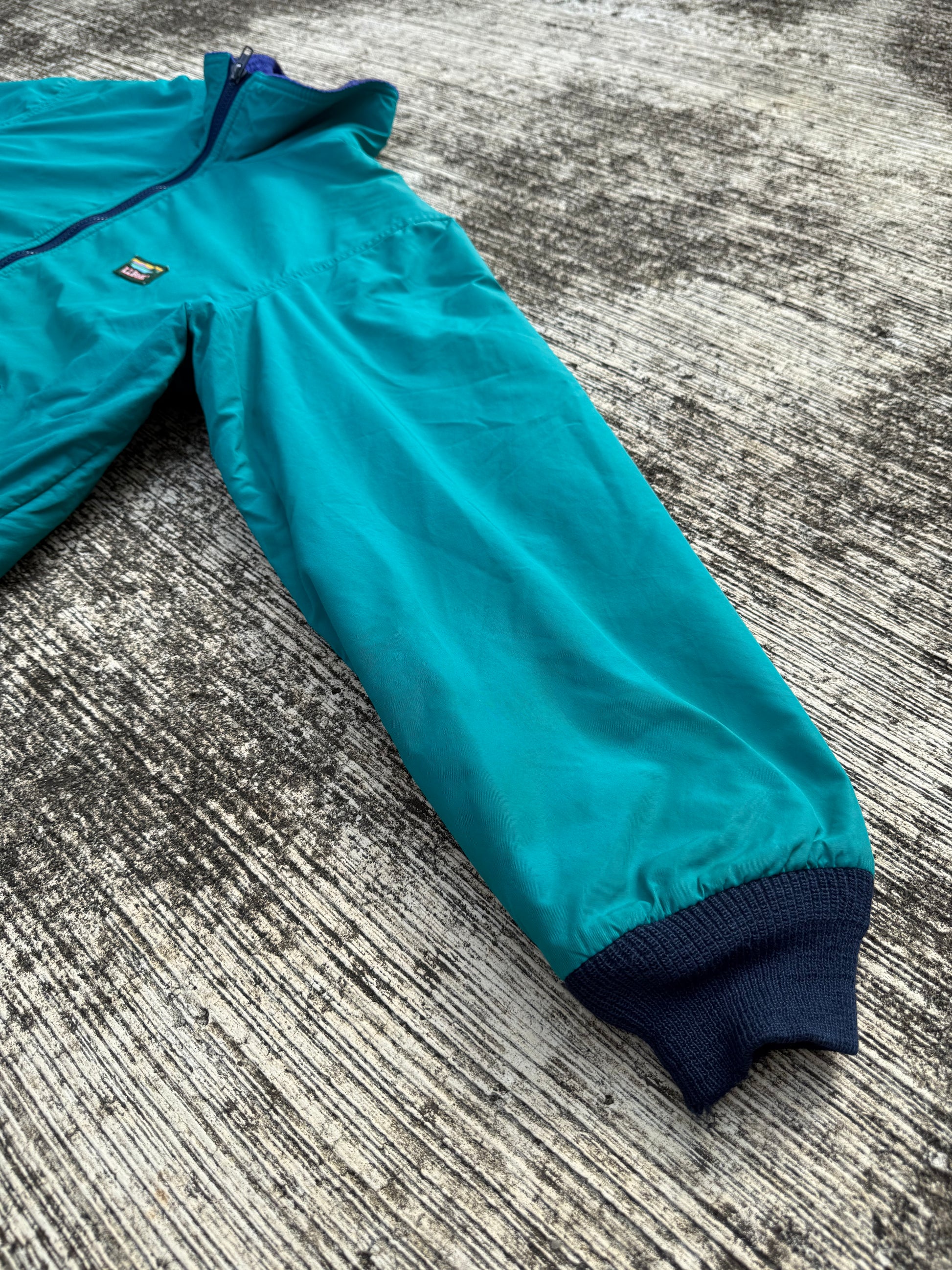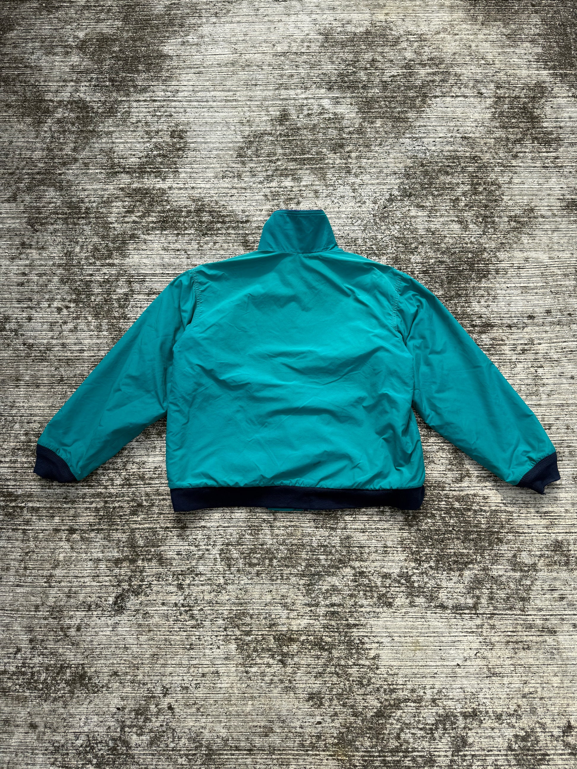 Vintage L.L.Bean Warm-Up Jacket – Made in USA Teal Nylon with Blue Fleece Lining