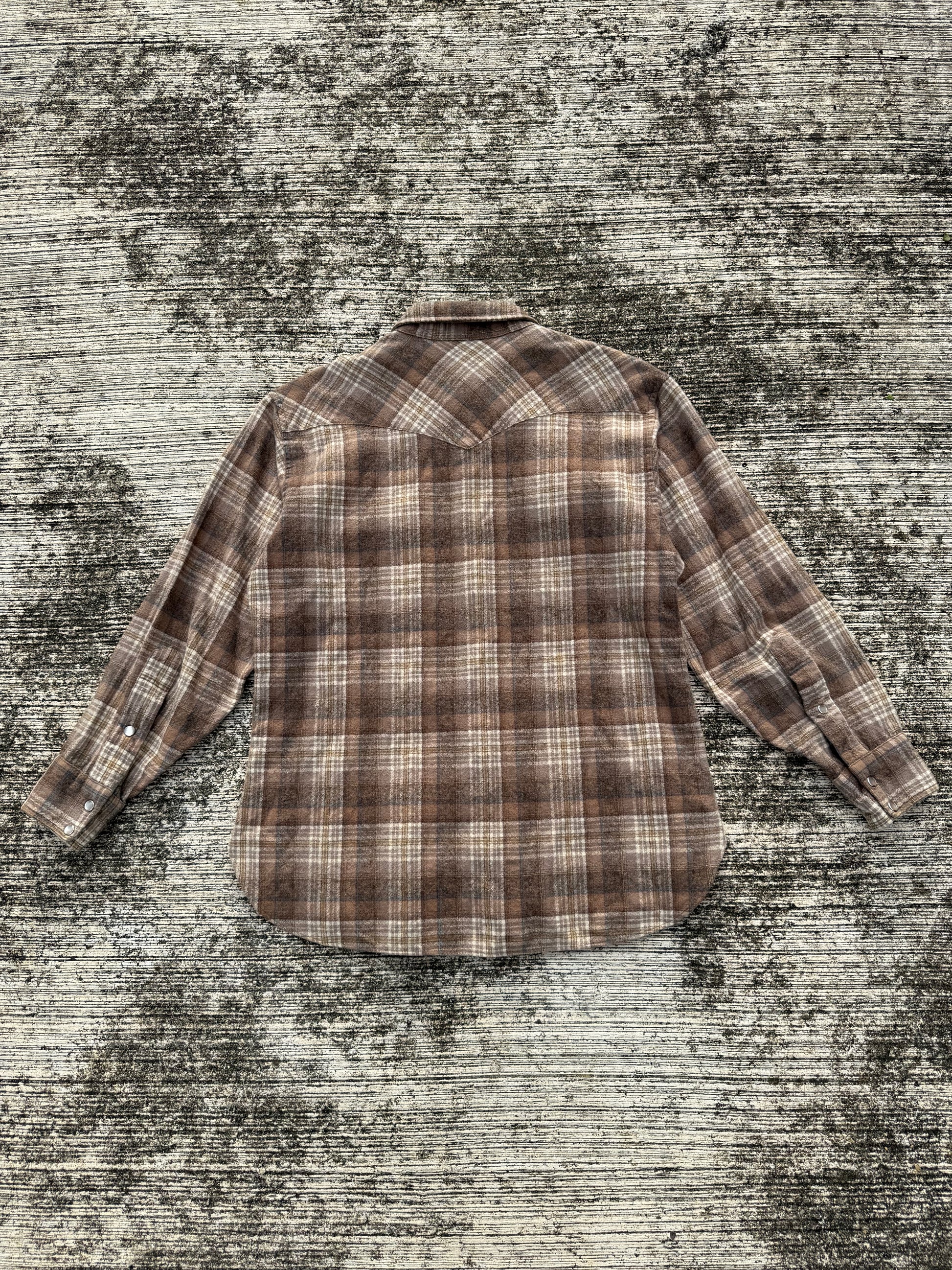 Vintage Pendleton High Grade Western Wear Wool Shirt Brown Plaid USA Made