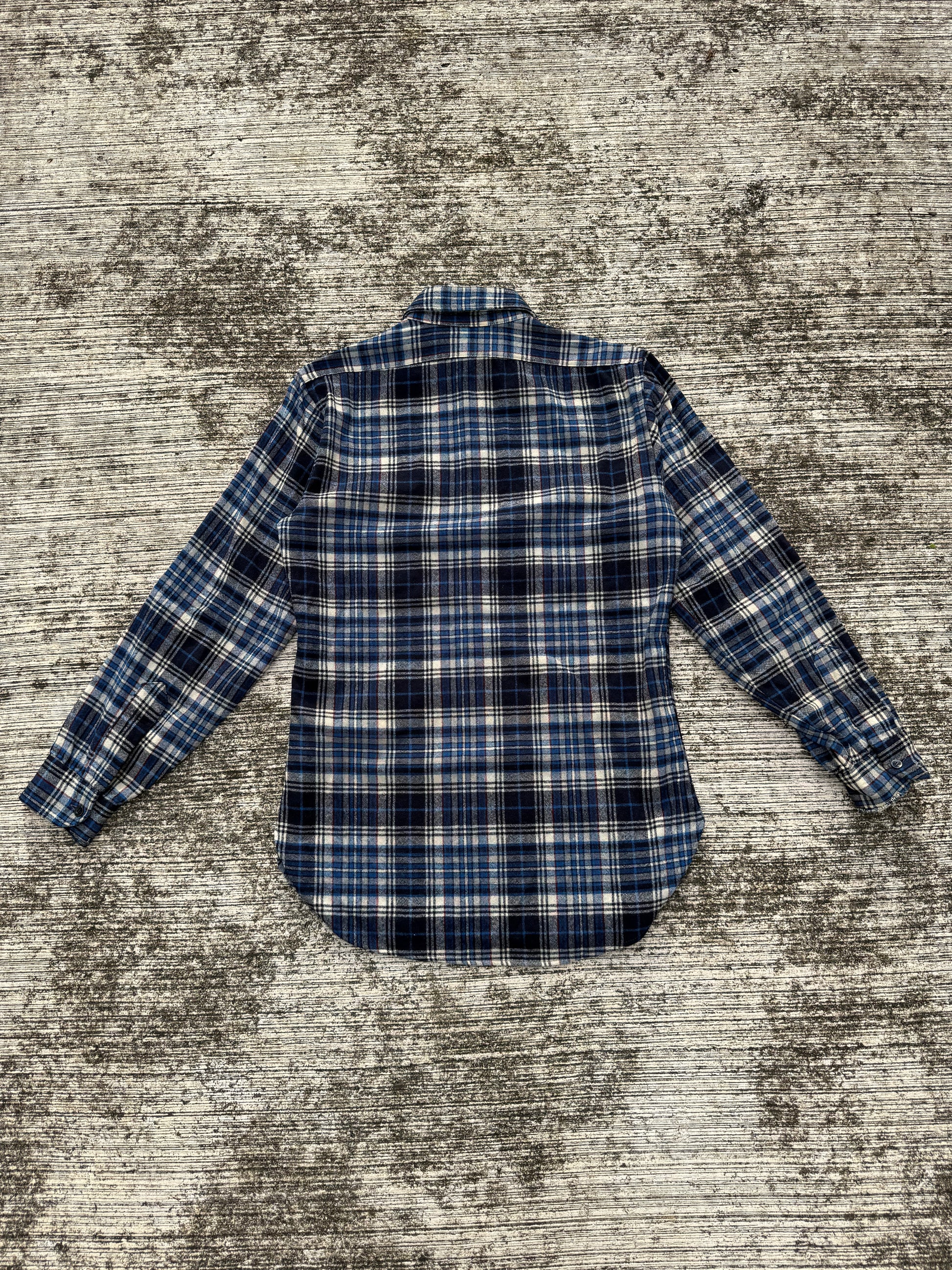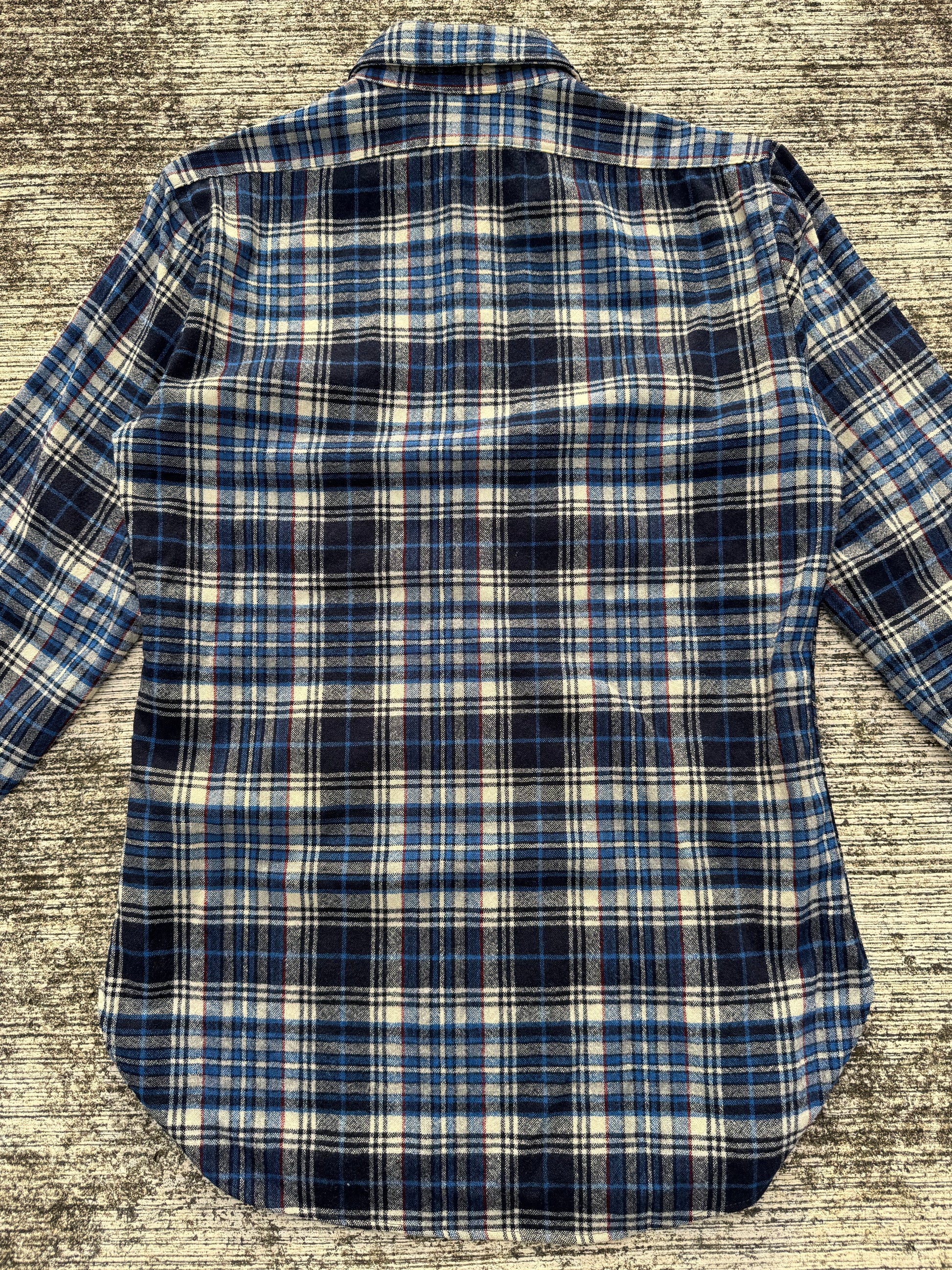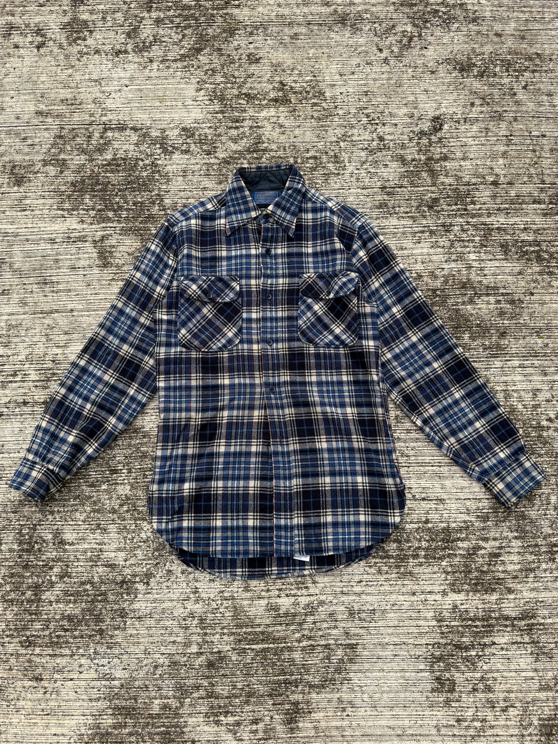 Vintage Pendleton Wool Plaid Shirt Navy Blue Cream USA Made