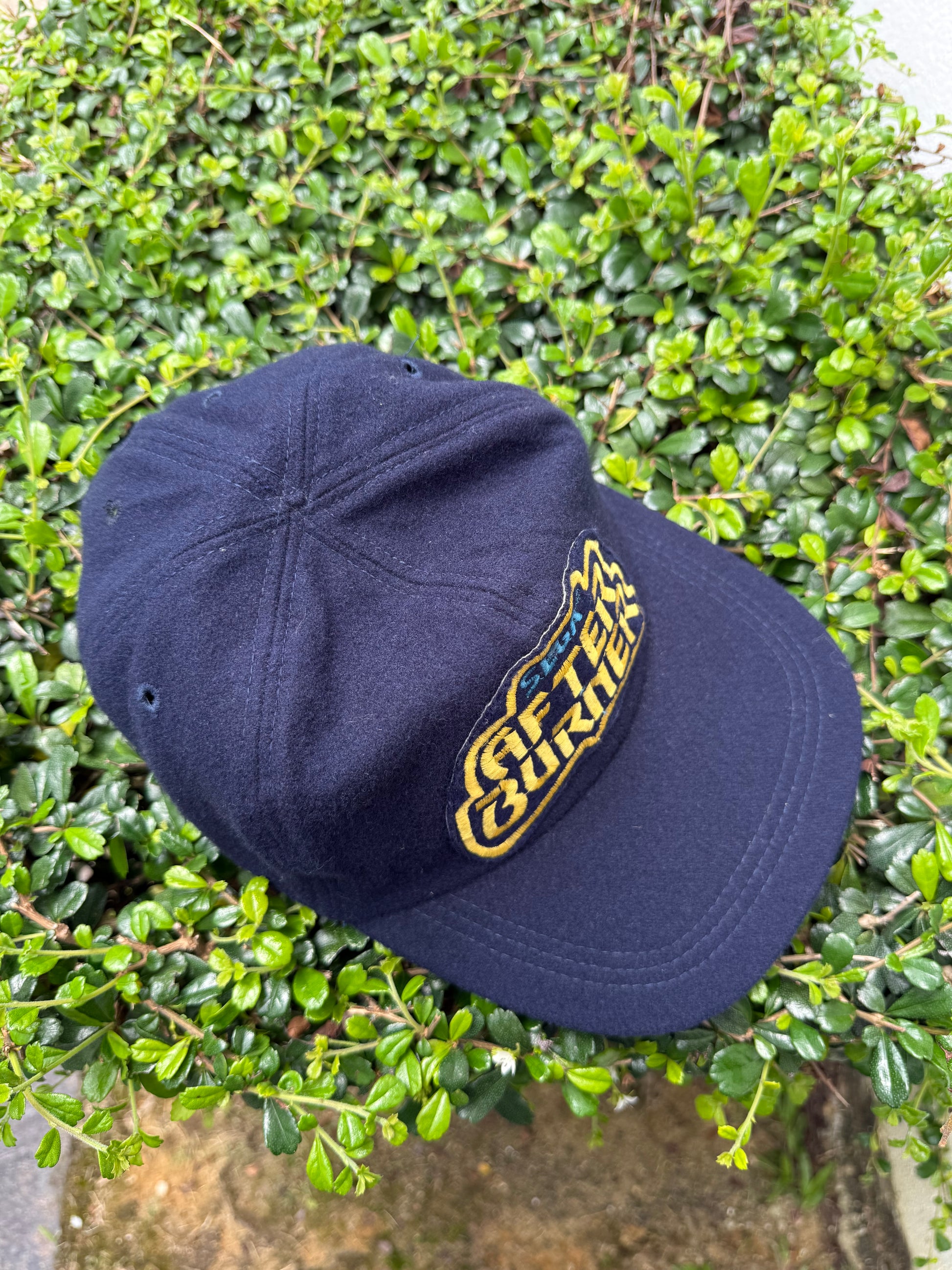 Original vintage promo cap for SEGA’s classic 1987 arcade game After Burner. Features bold embroidered yellow logo with blue SEGA branding on a navy wool blend crown. Likely distributed for arcade staff or as promotional merchandise during the late 1980s.