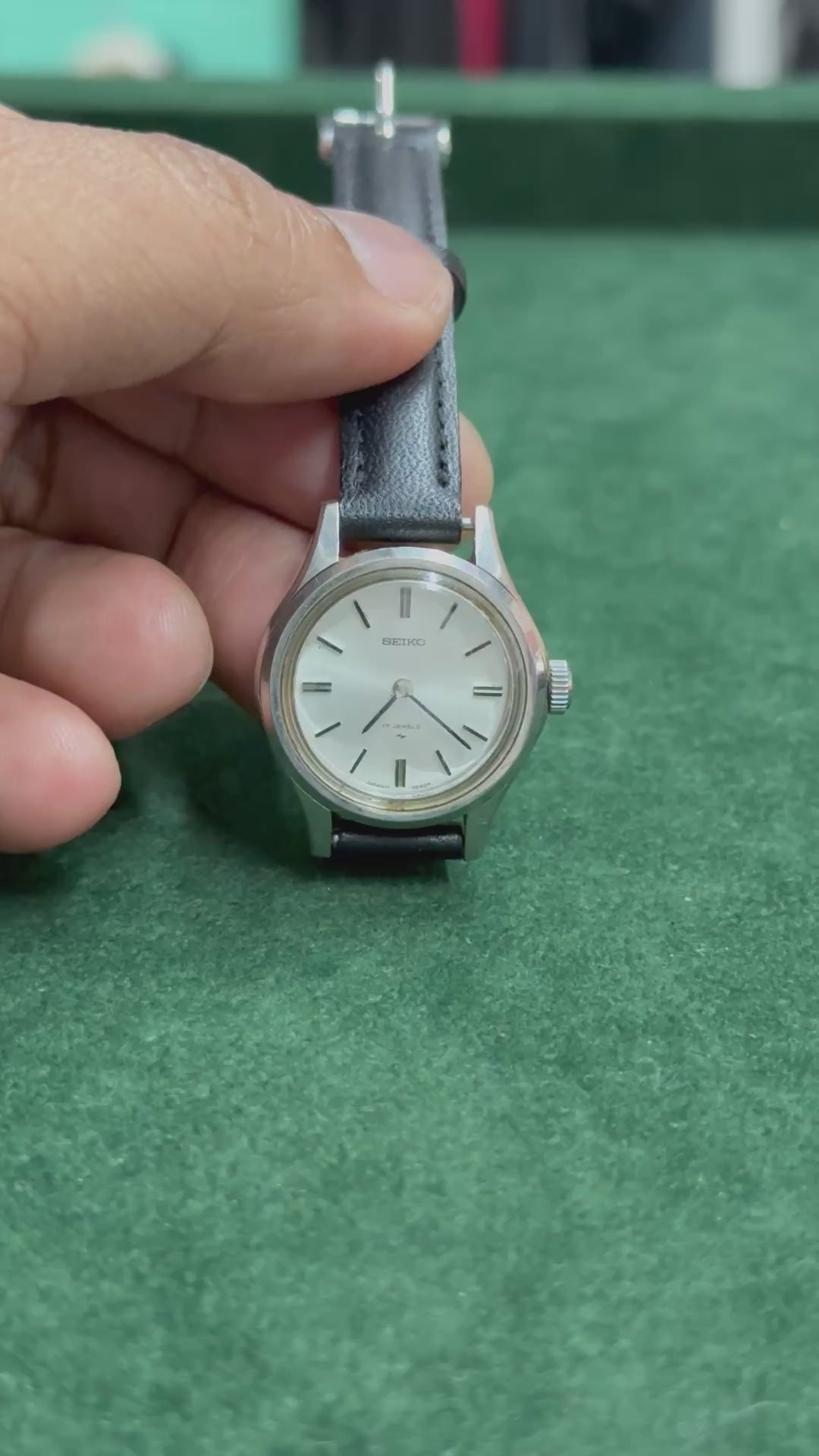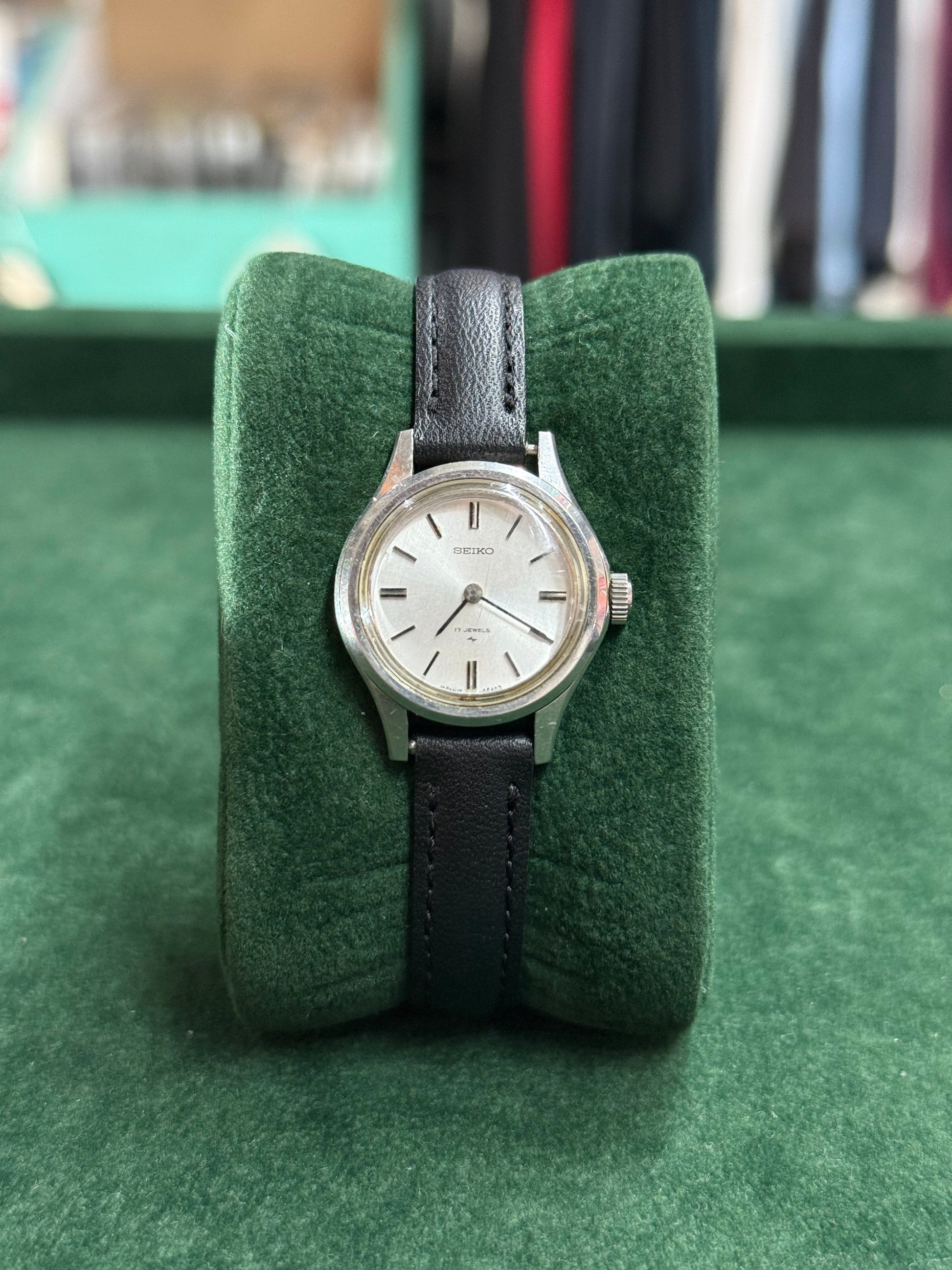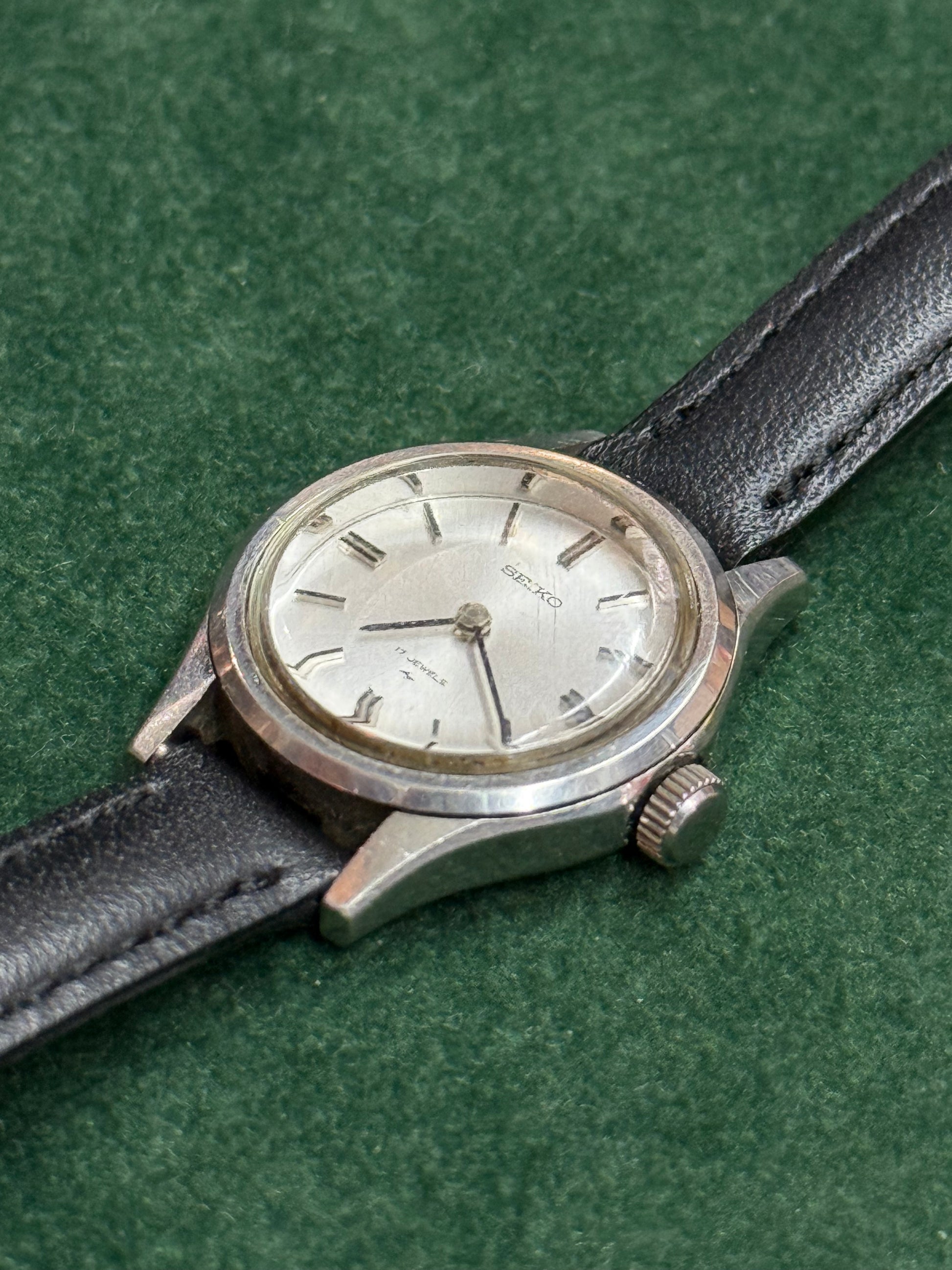 Vintage Seiko 17 Jewels Manual Wind Dress Watch Black Strap