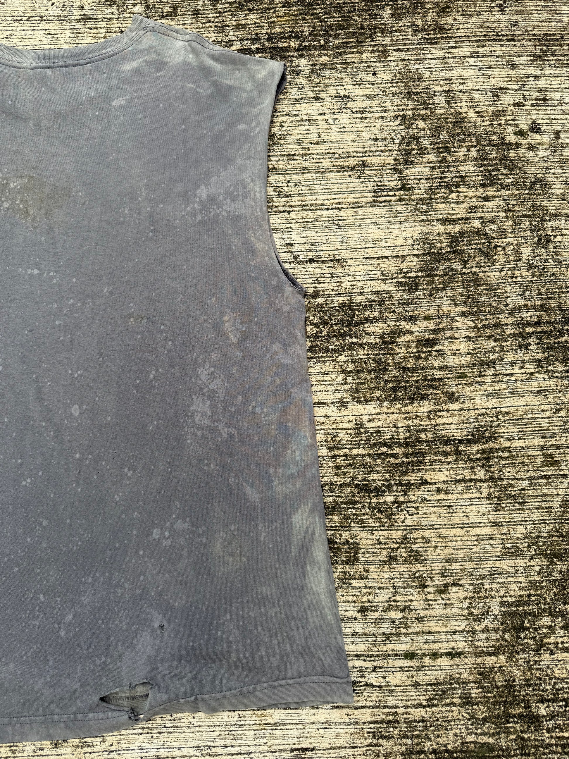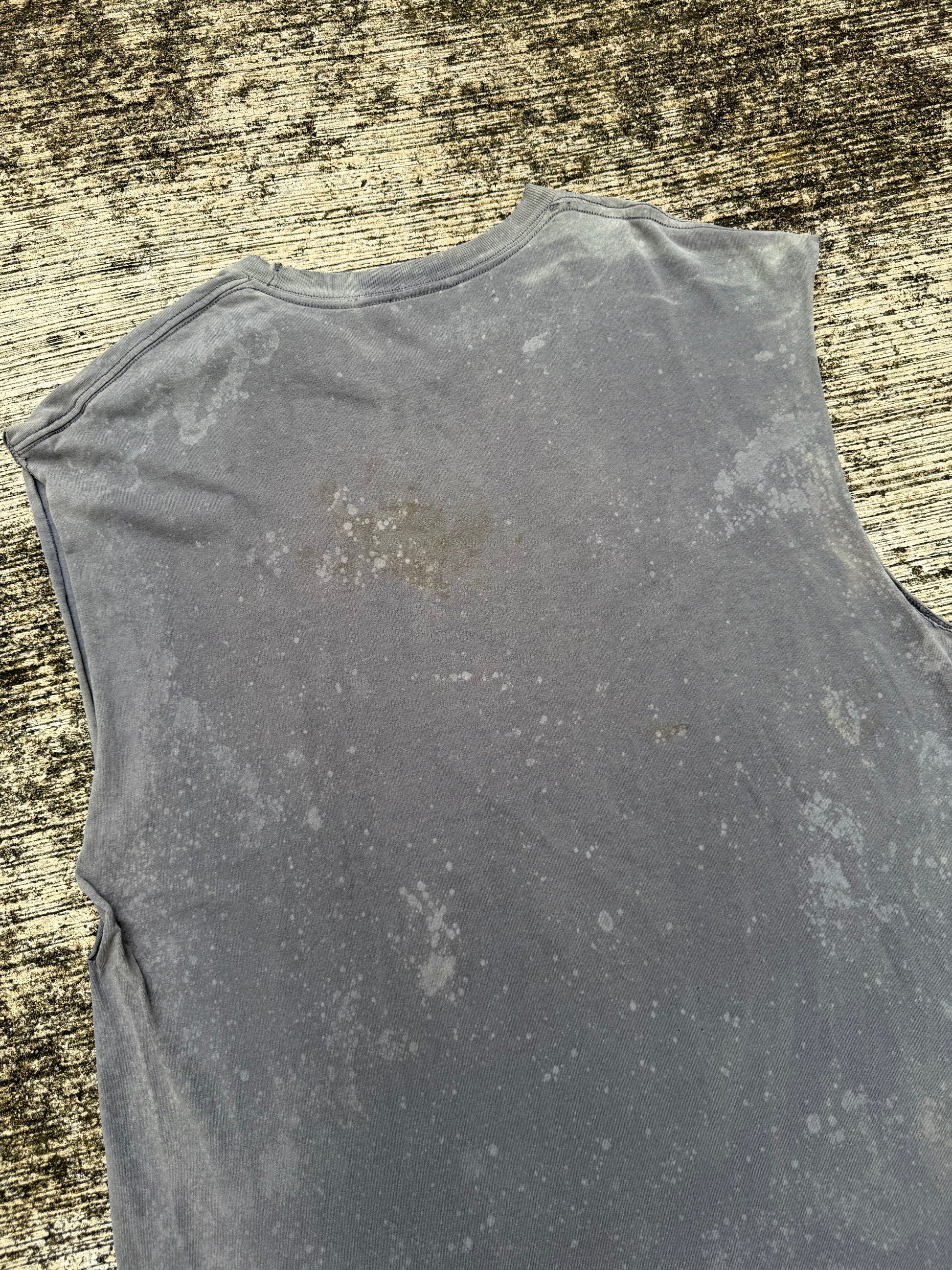 This tee has heavy DIY character: raw cut-off sleeves, bleach fade, holes, and wear throughout, making it a true one-of-a-kind piece. Perfect for collectors of cult 90s streetwear, movie parody shirts, and grunge punk fashion.