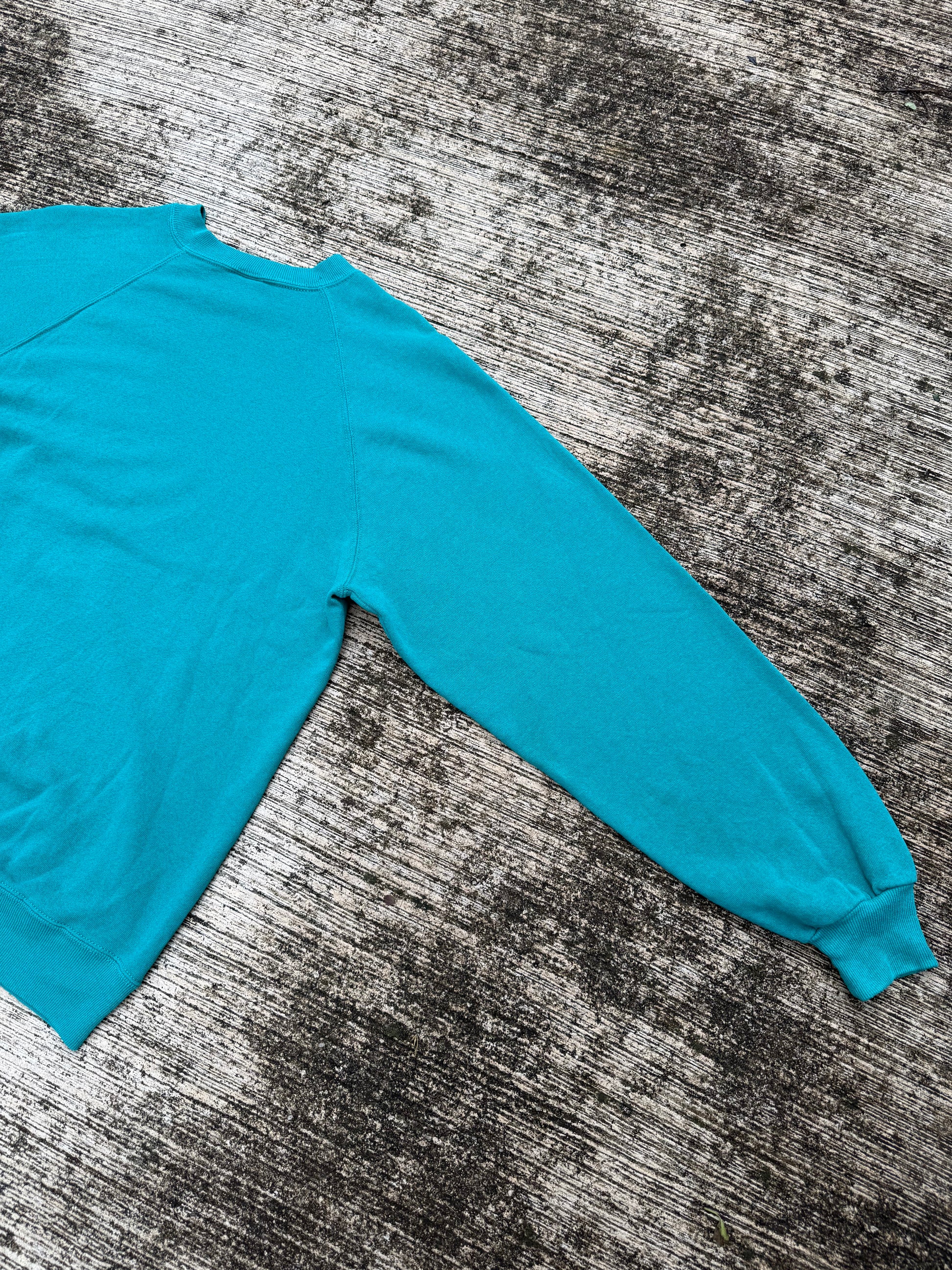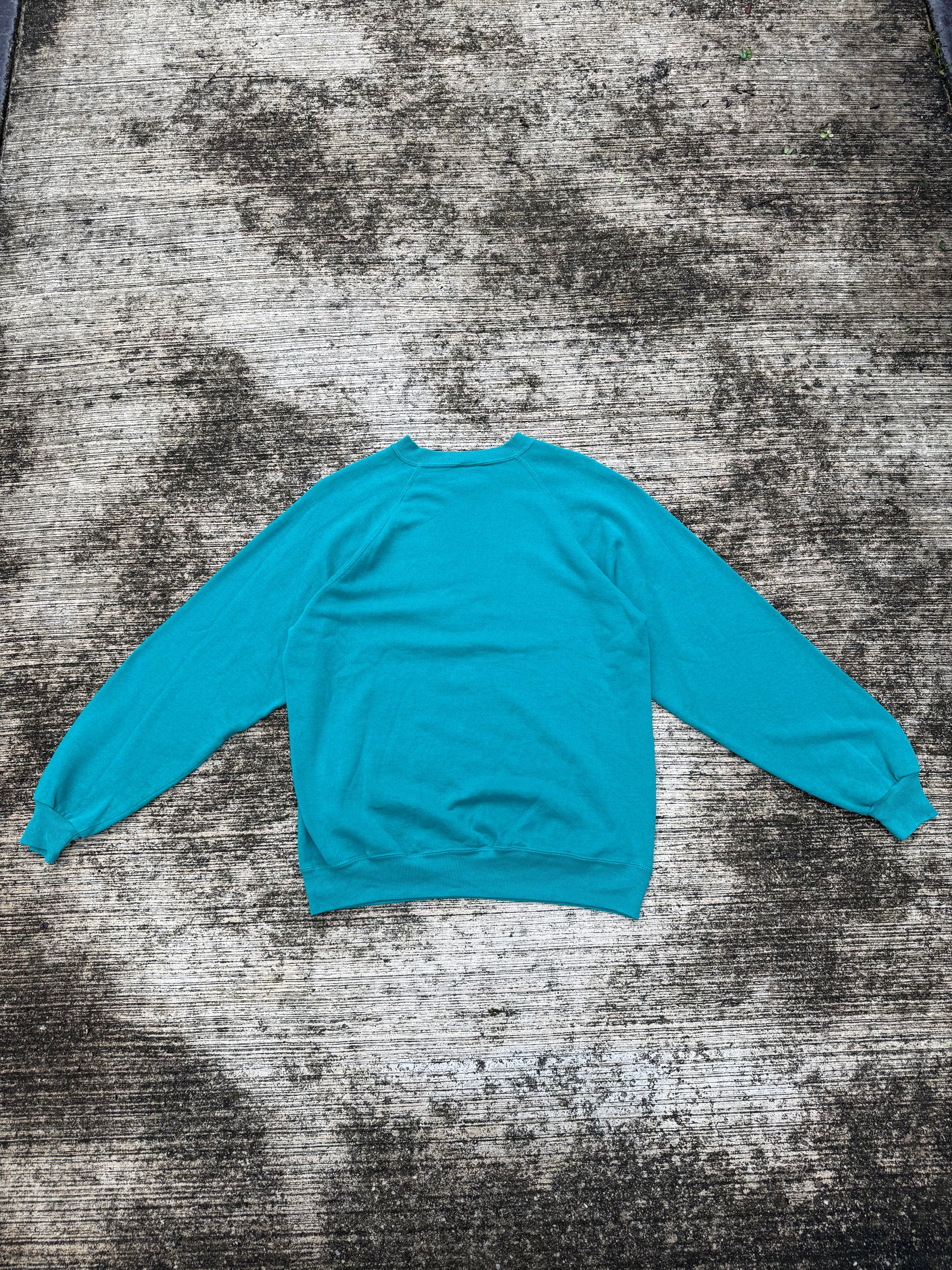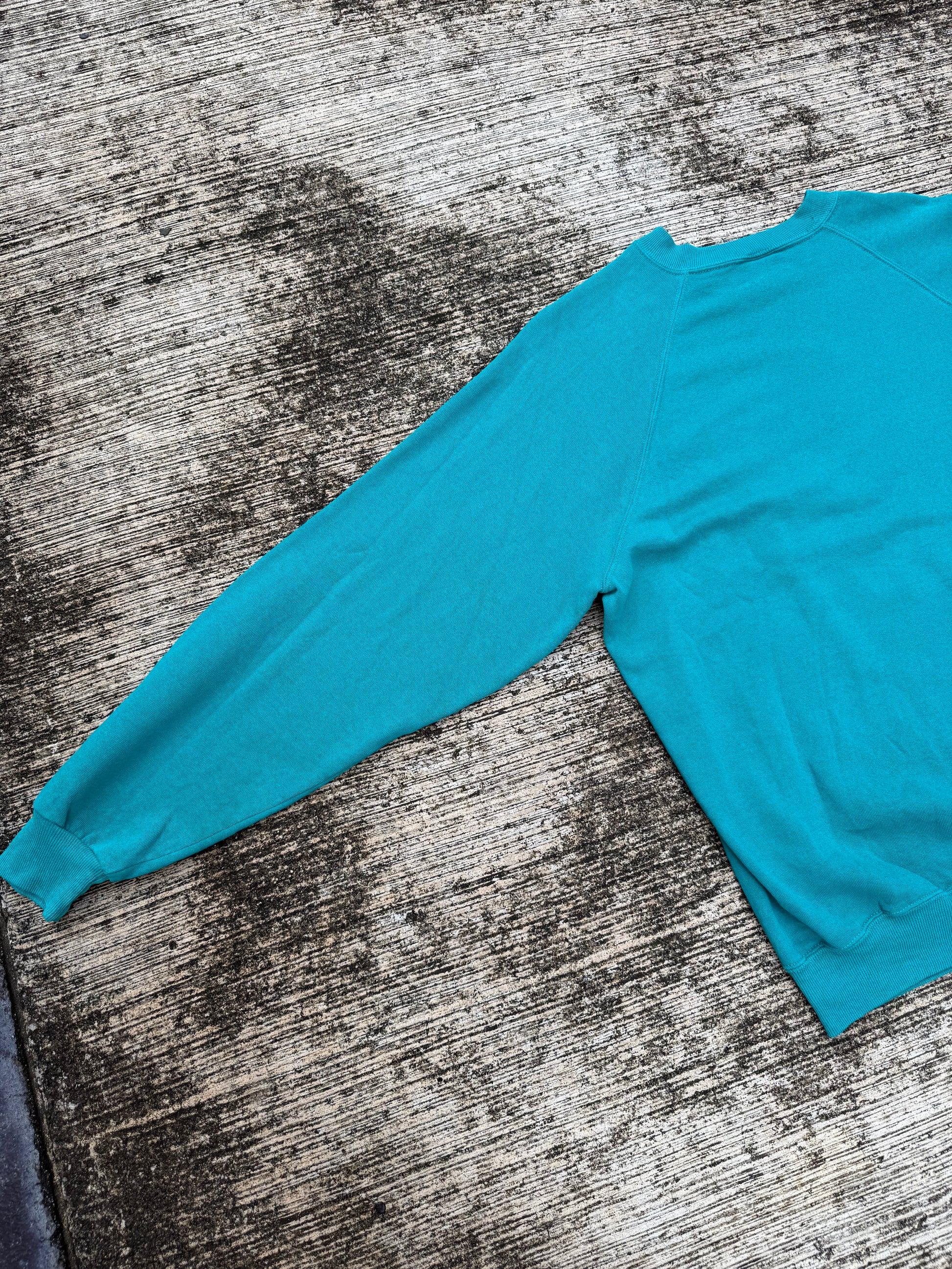 Soft cotton/poly blend fleece with ribbed cuffs and hem. A collectible piece for skateboarding fans, 80s/90s streetwear lovers, and vintage crewneck collectors.