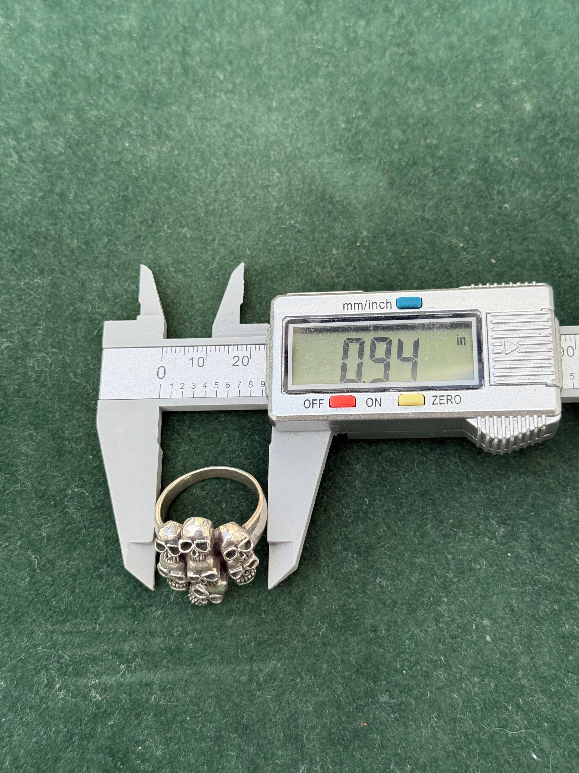 Vintage Sterling Silver 925 Multi Skull Ring – Gothic Biker Punk Jewelry