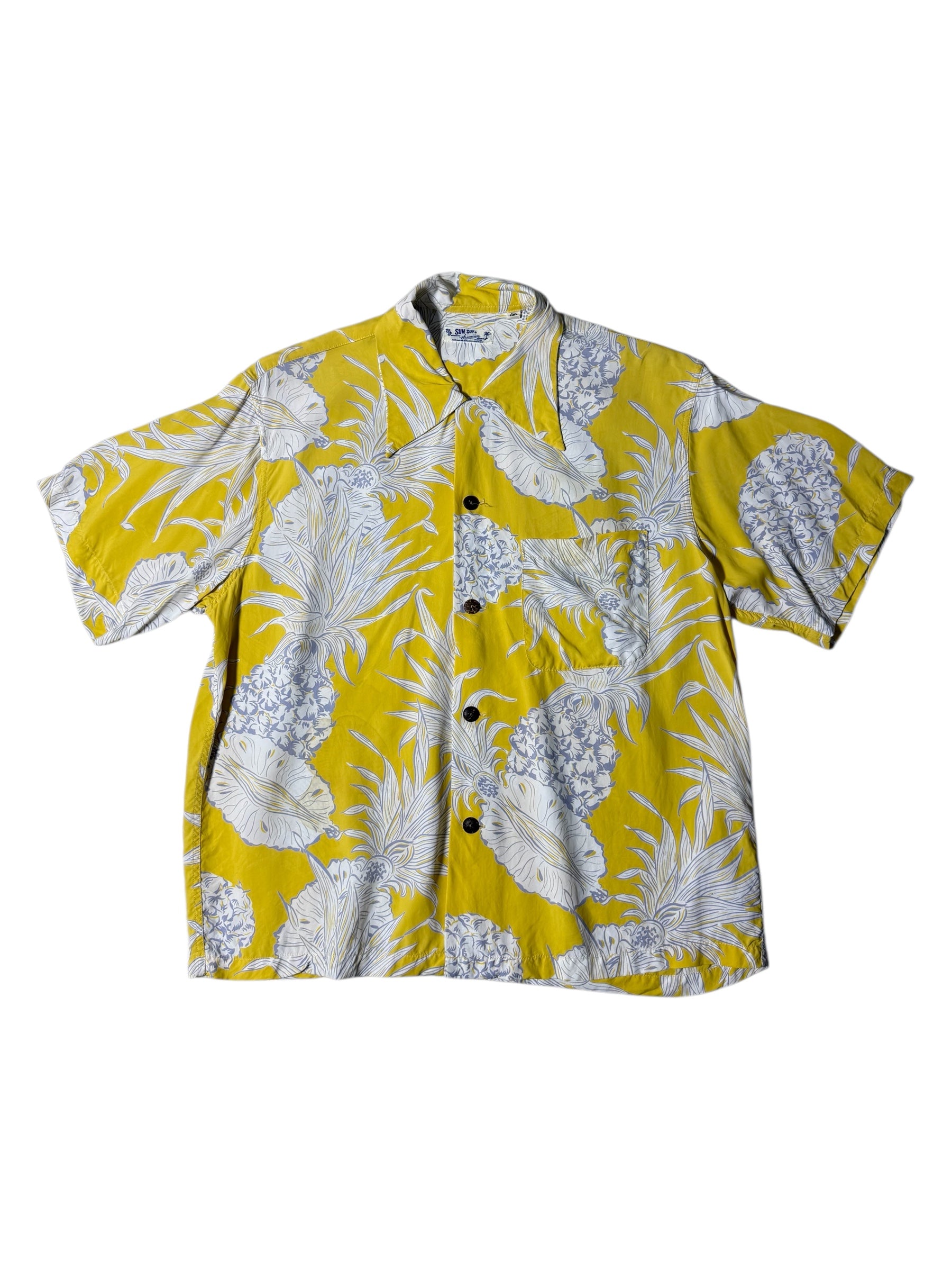 Vintage Sun Surf Hawaiian Rayon Aloha Shirt Yellow Pineapple Print