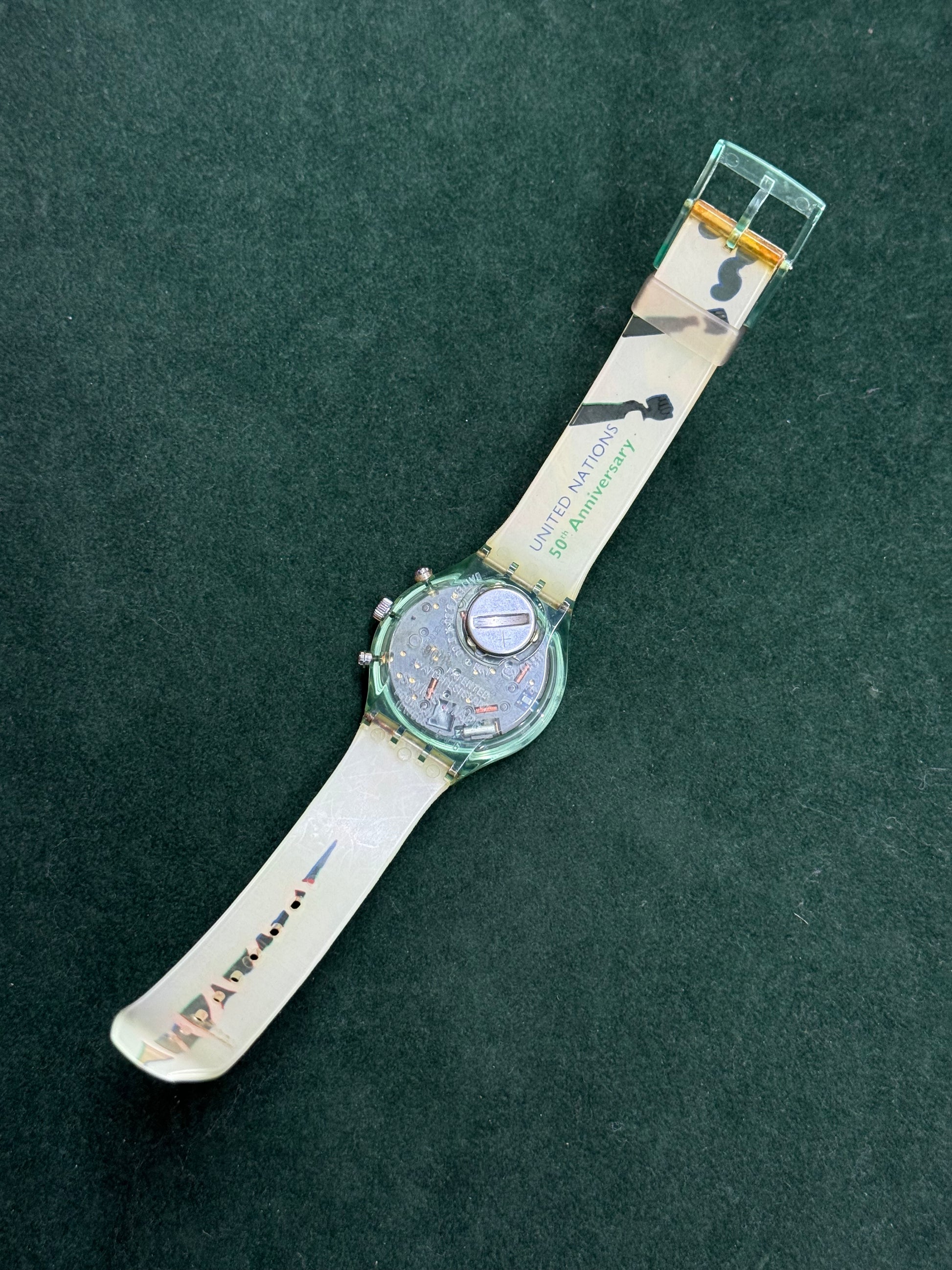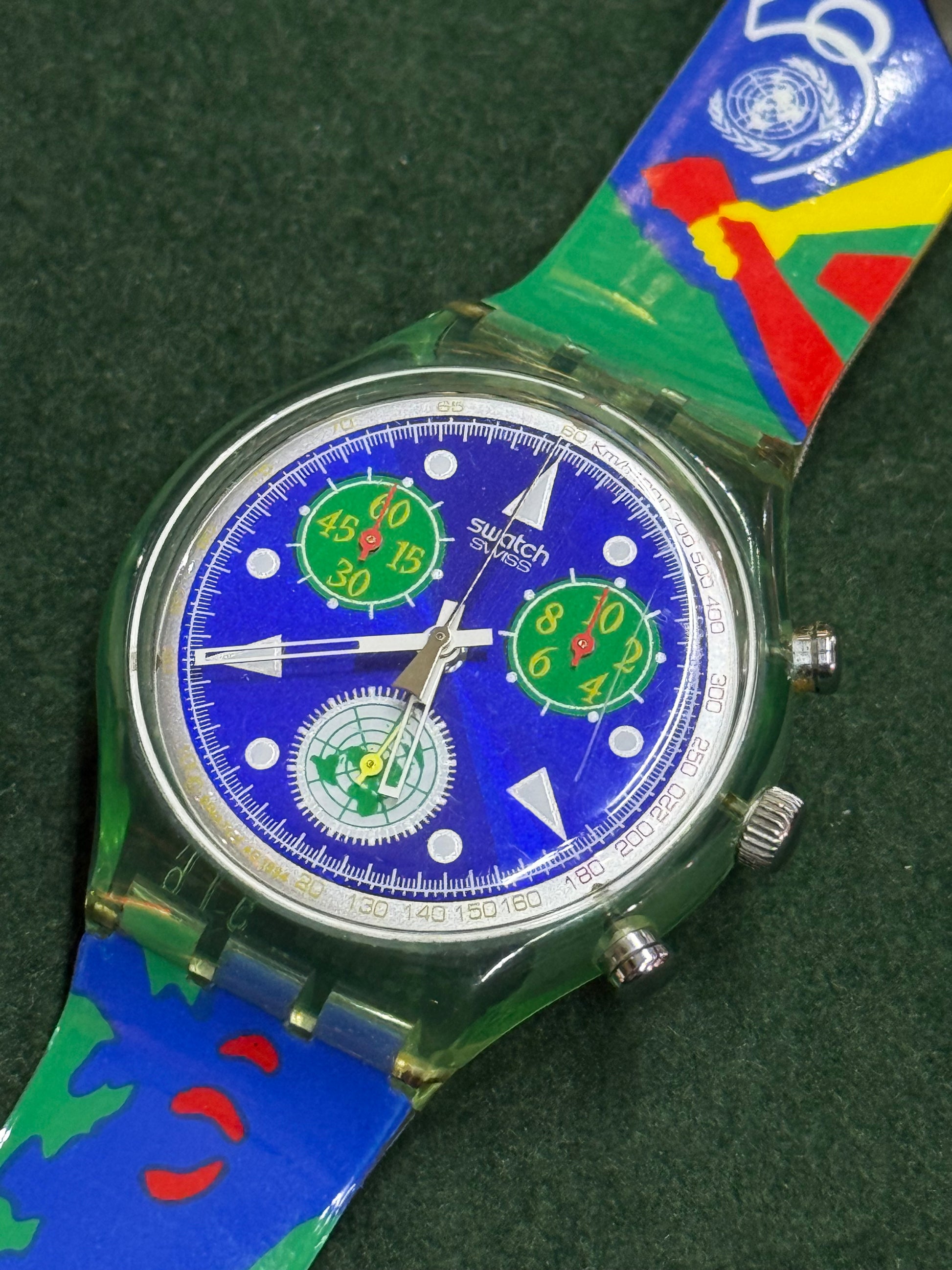 Vintage Swatch 50th Anniversary United Nation AG 1994 Chronograph Watch