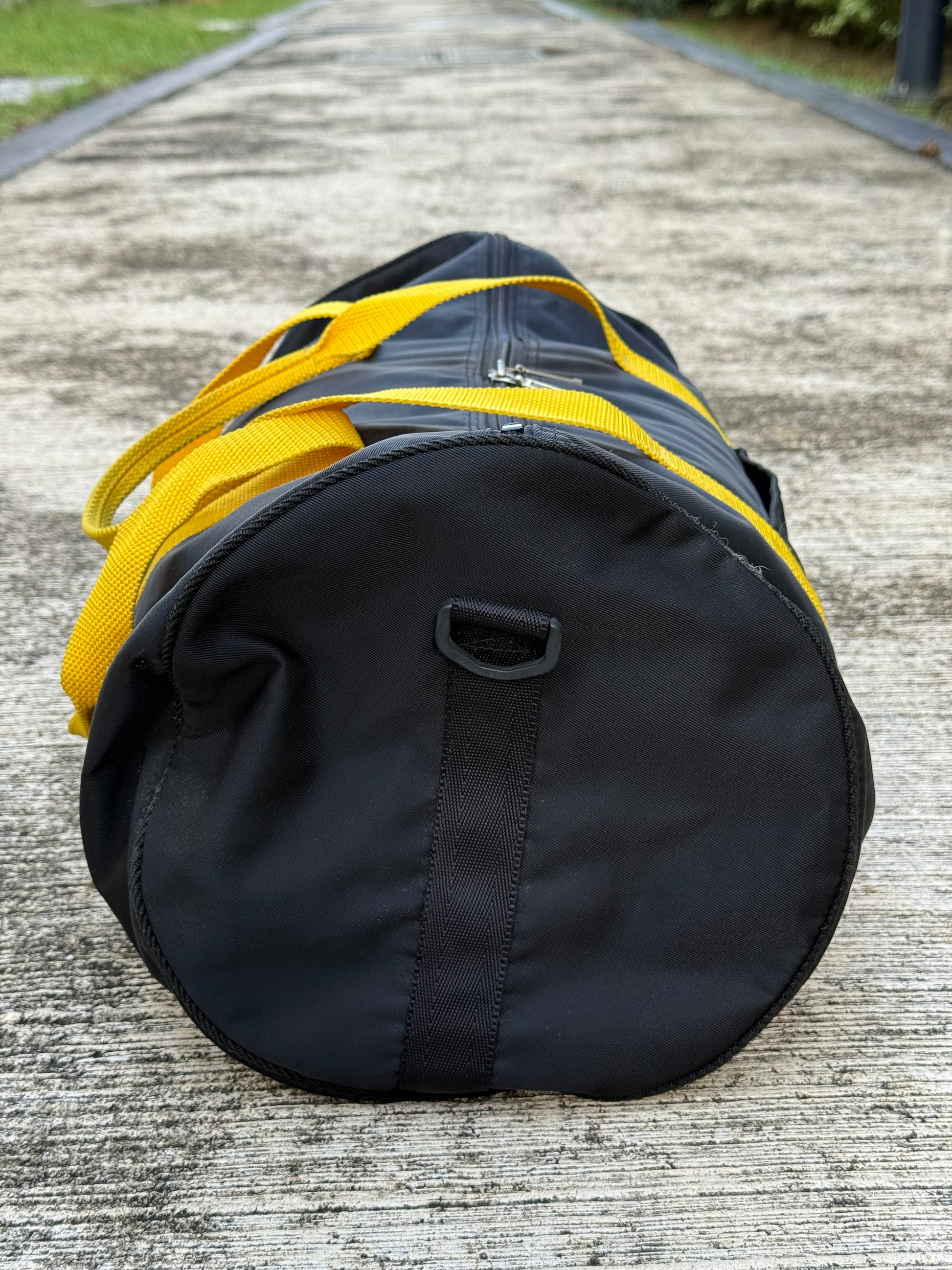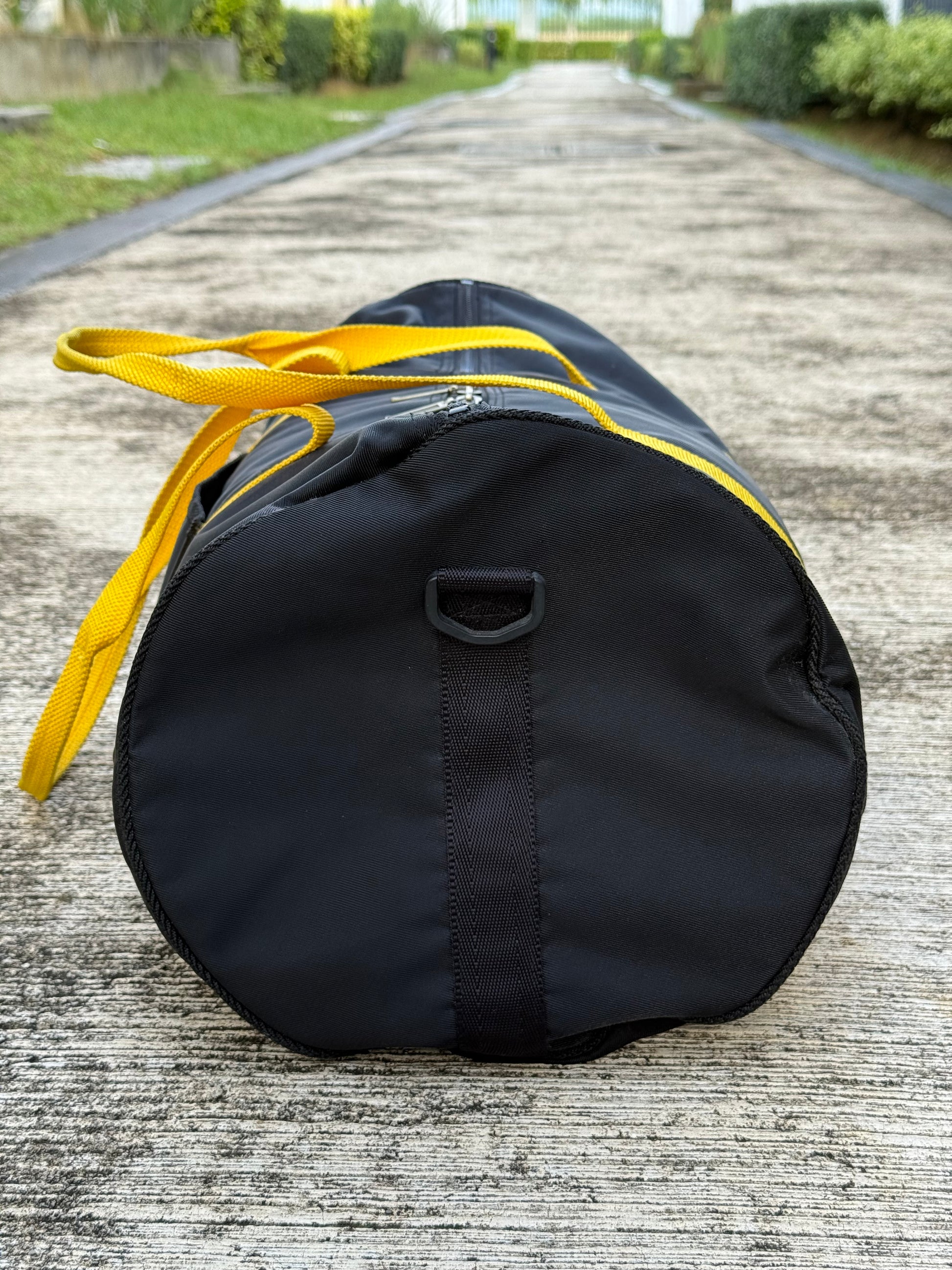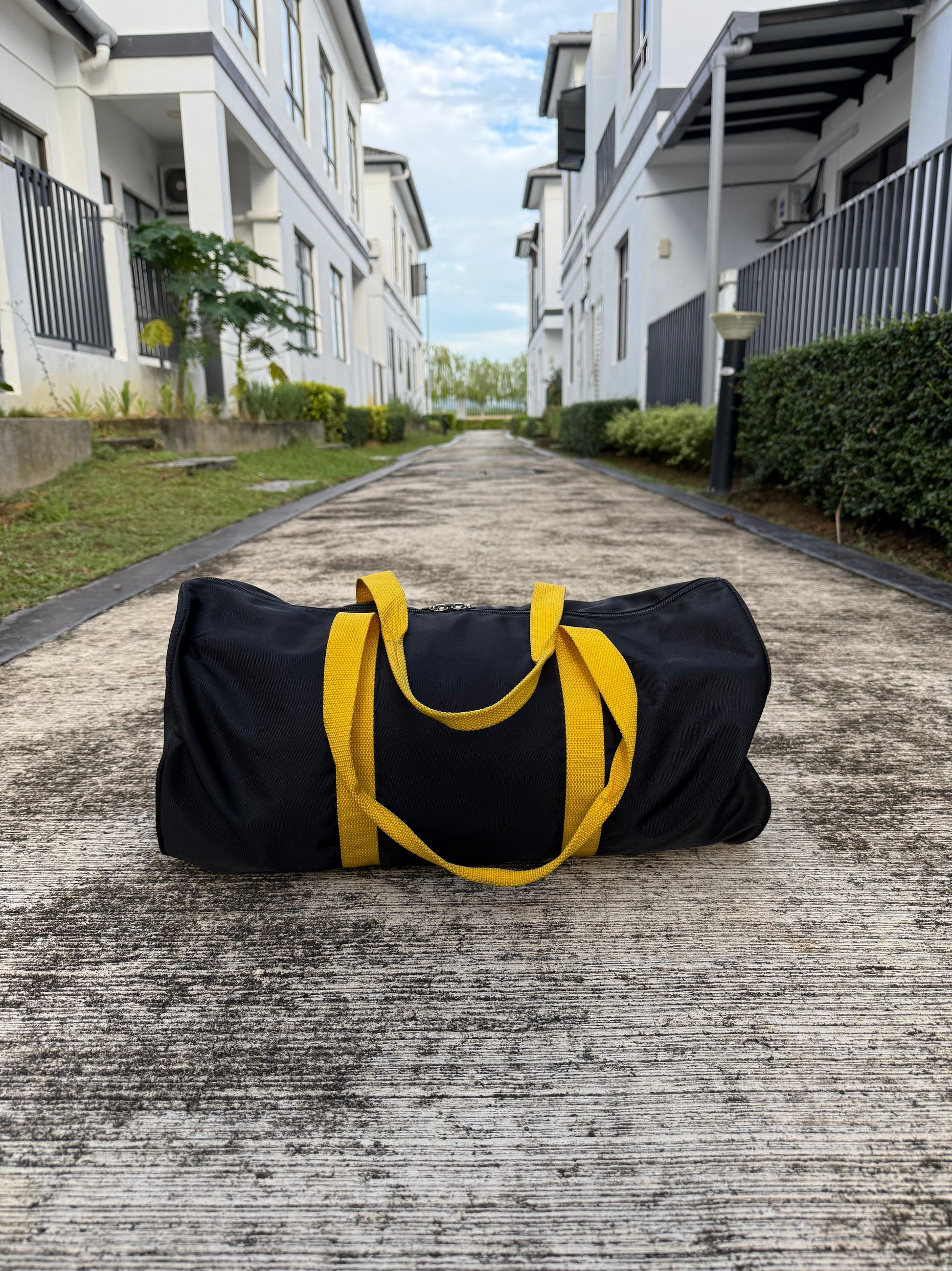Constructed from durable black nylon with bold yellow straps, zip closure, and adjustable shoulder strap. Front panel features printed The Chemical Brothers logo in neon yellow-green with album title beneath. Lightweight yet roomy – perfect as a carry-on, gym bag, or collectible piece of music merchandise.
