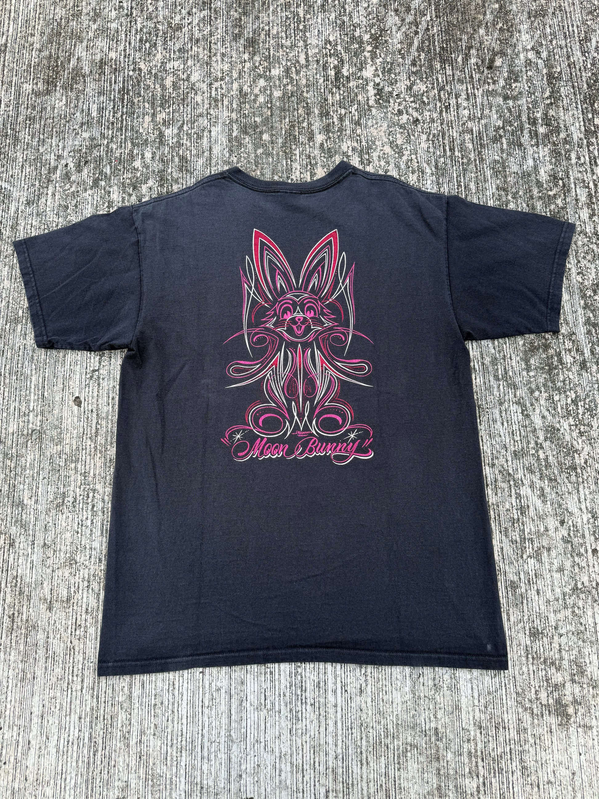 Vintage Y2K Moon Bunny Pinstripe Graphic Tee (Mooneyes Worldwide)